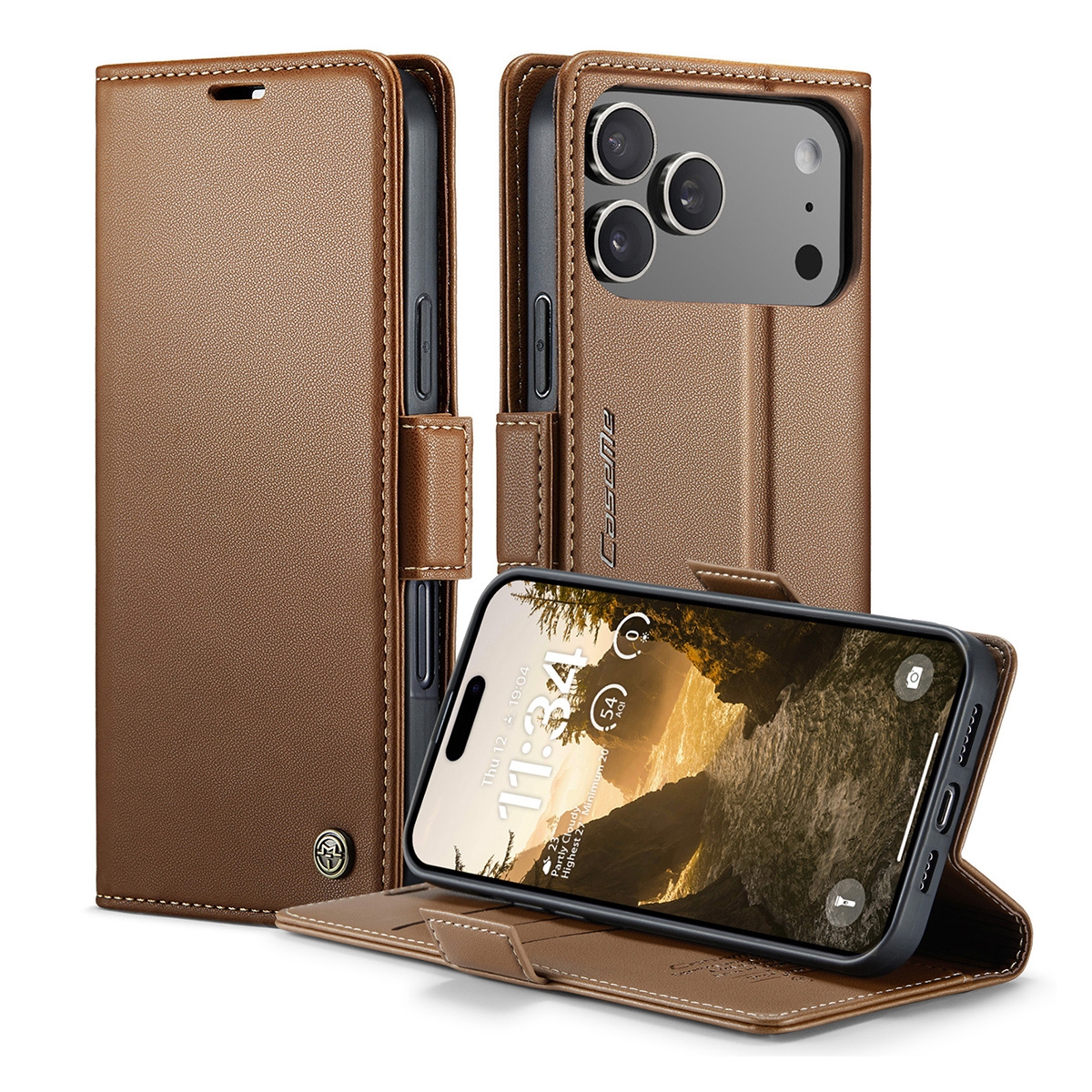 Flip Phone Case for iPhone 17 Pro Max with Butterfly Buckle - RFID Blocking Anti, Brown