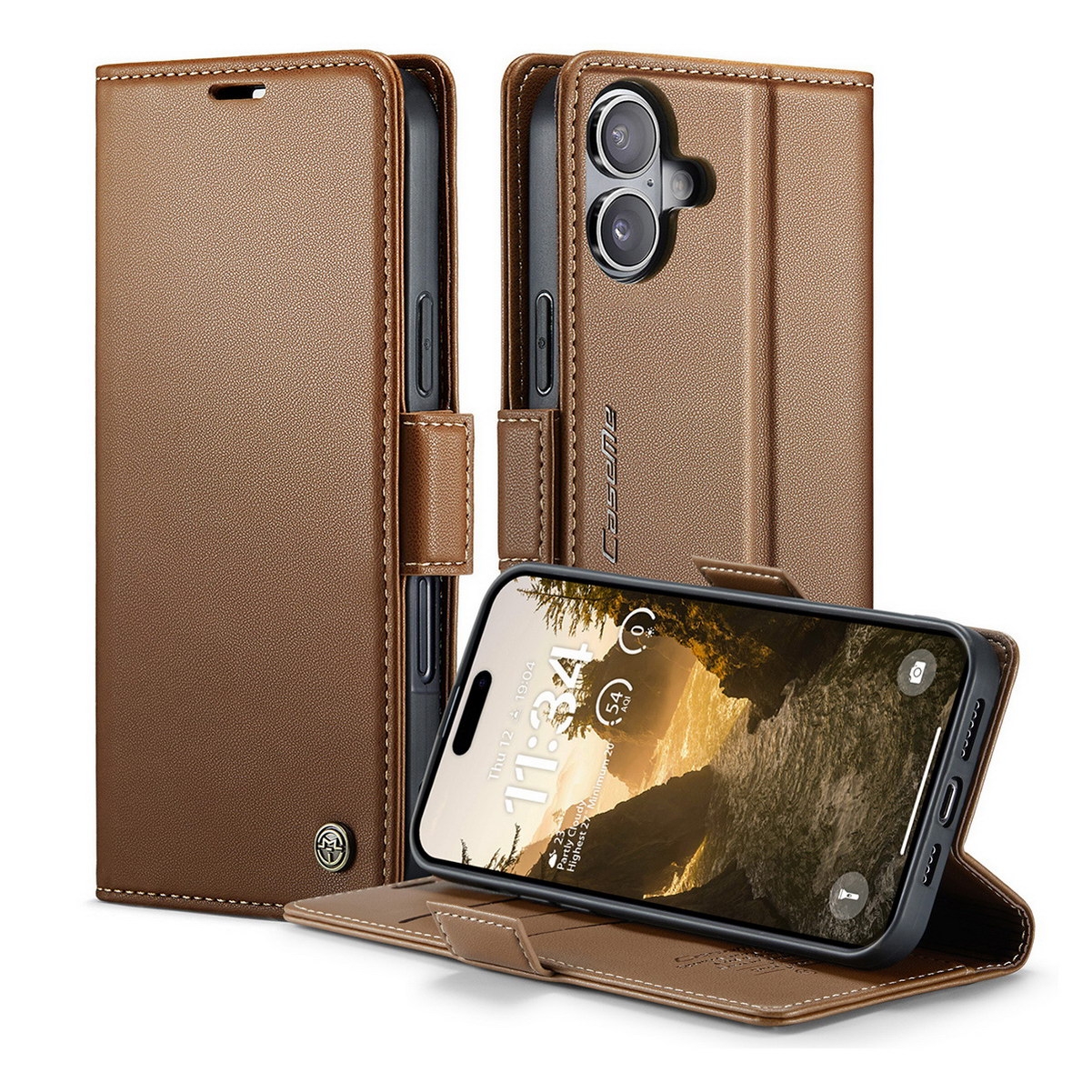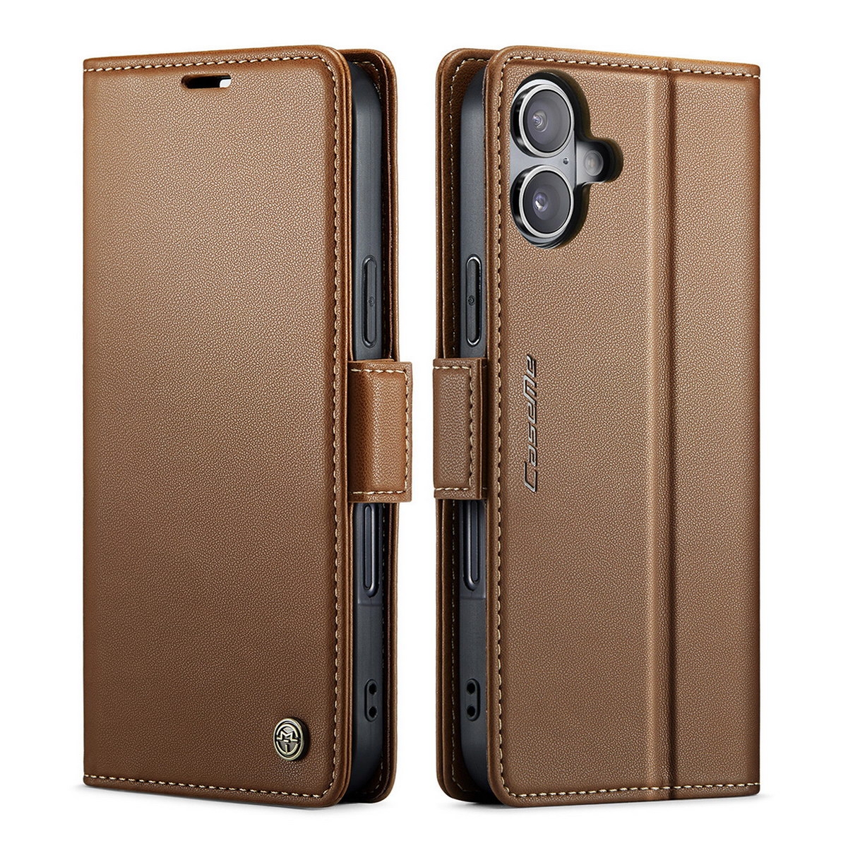 Flip Phone Case for iPhone 17 with Butterfly Buckle - RFID Blocking Anti, Brown