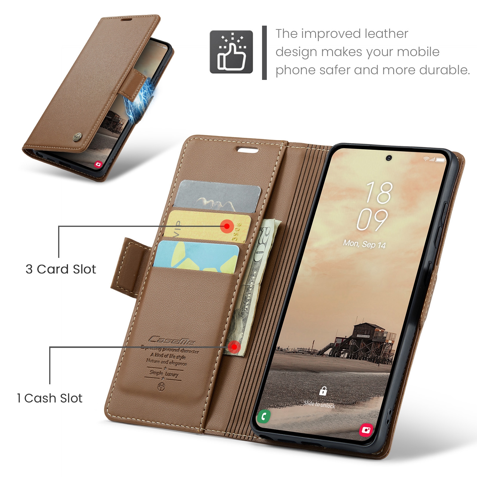 Flip Phone Case for S26 Ultra with Butterfly Buckle - RFID Blocking Anti, Brown