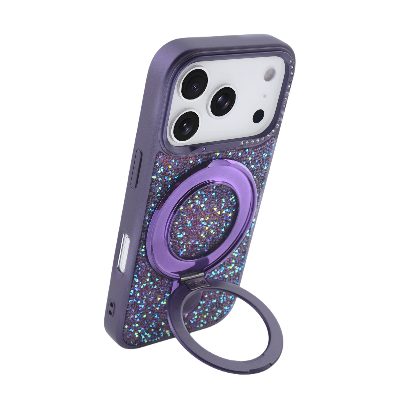 Glitter Magnetic Stand Phone Case for iPhone 17 Pro Max - Sparkly Rhinestone Design, Purple