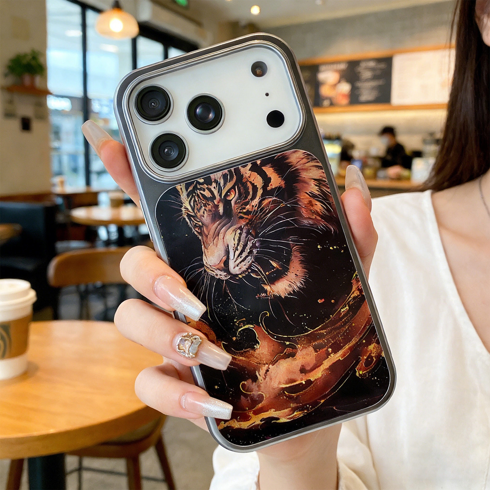 Golden Tiger Phone Case for iPhone 17 Pro Max - Marbled Ink Art Print, Brown