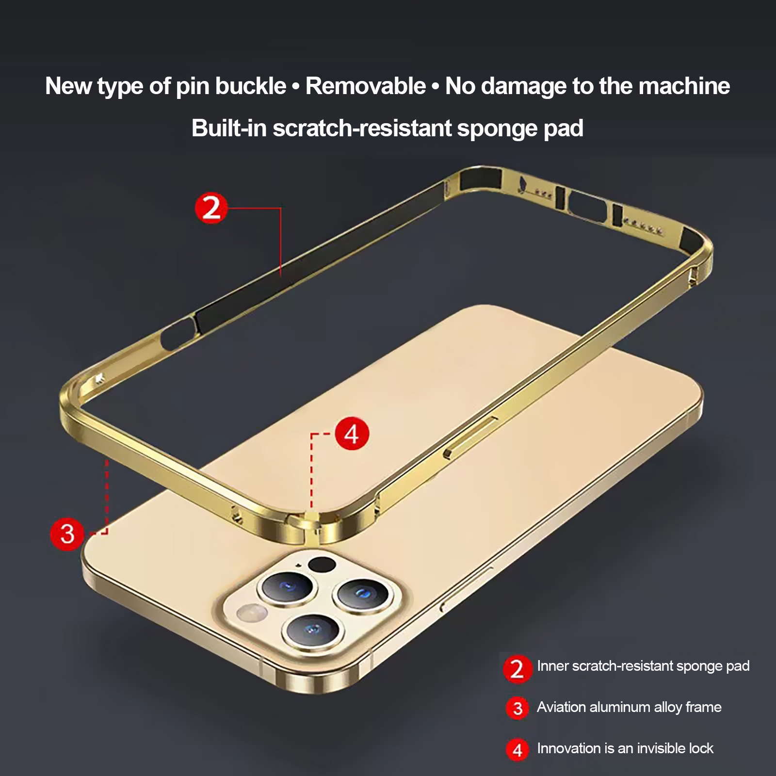- Material Structure: Built with a lightweight aviation-grade aluminum alloy bumper combined with a matching back cover, forming a stable metal frame design.