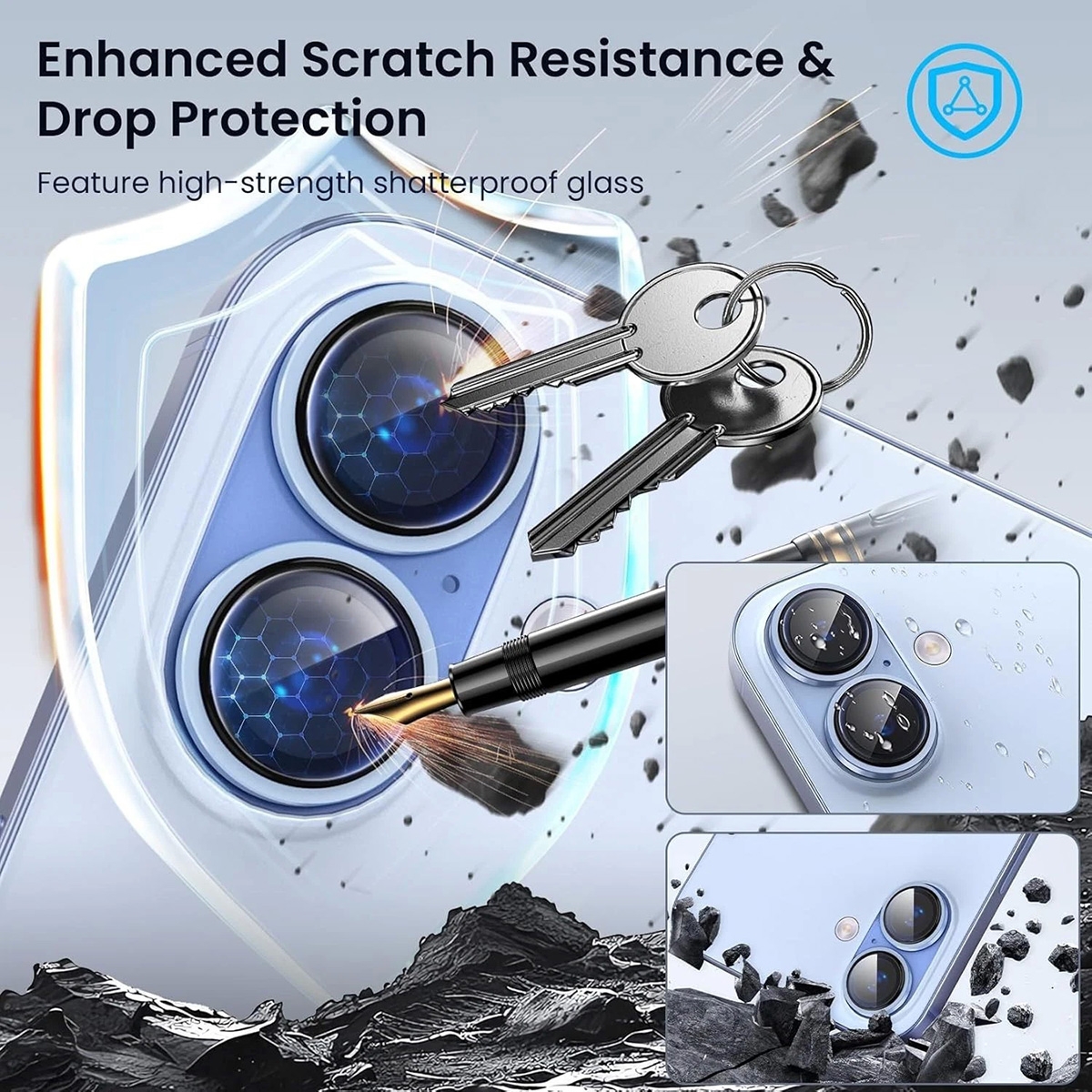 - Metal Frame Design: Features a sleek aluminum alloy ring for added camera edge protection and aesthetic consistency.