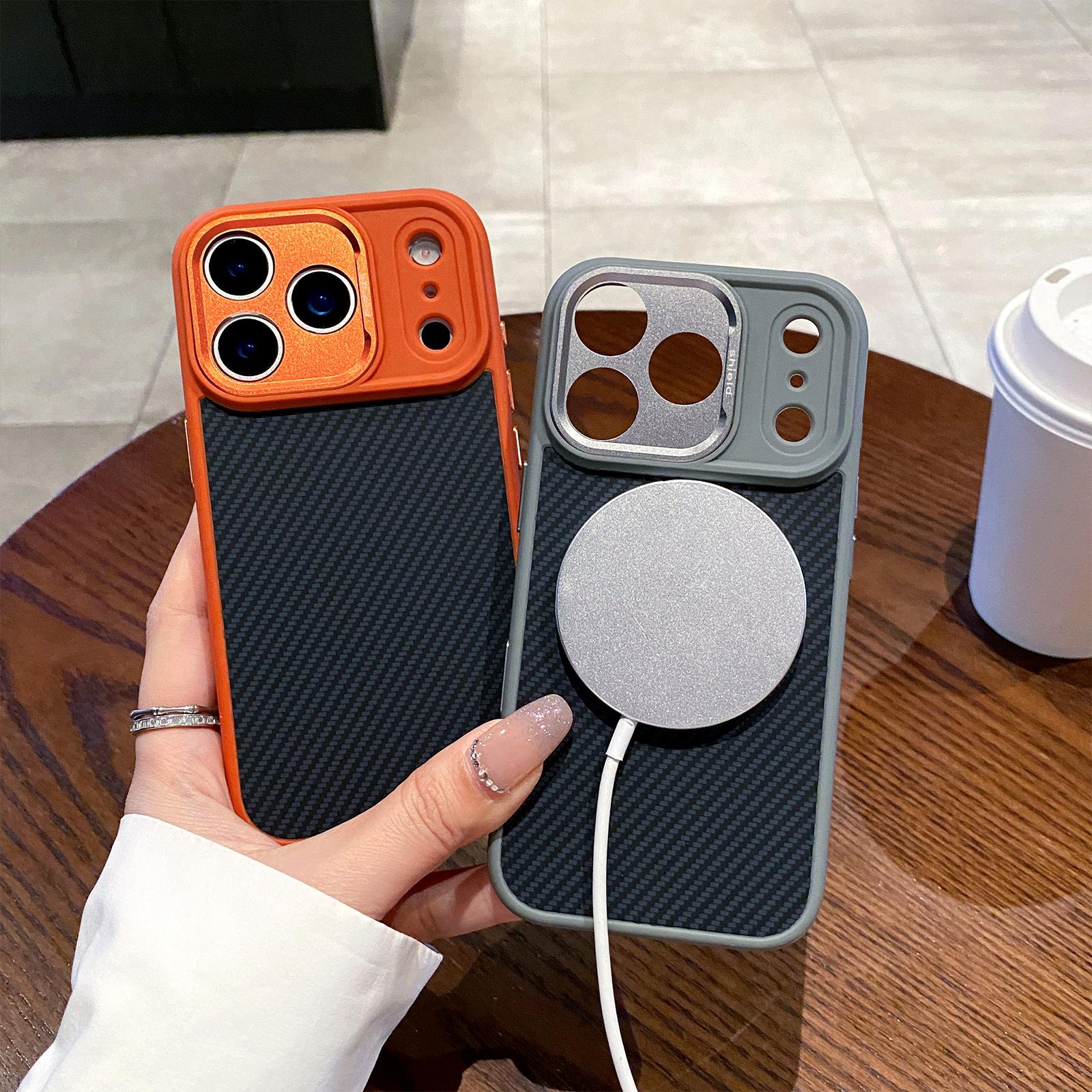 iPhone 17 Carbon Fiber Magnetic Case - Orange