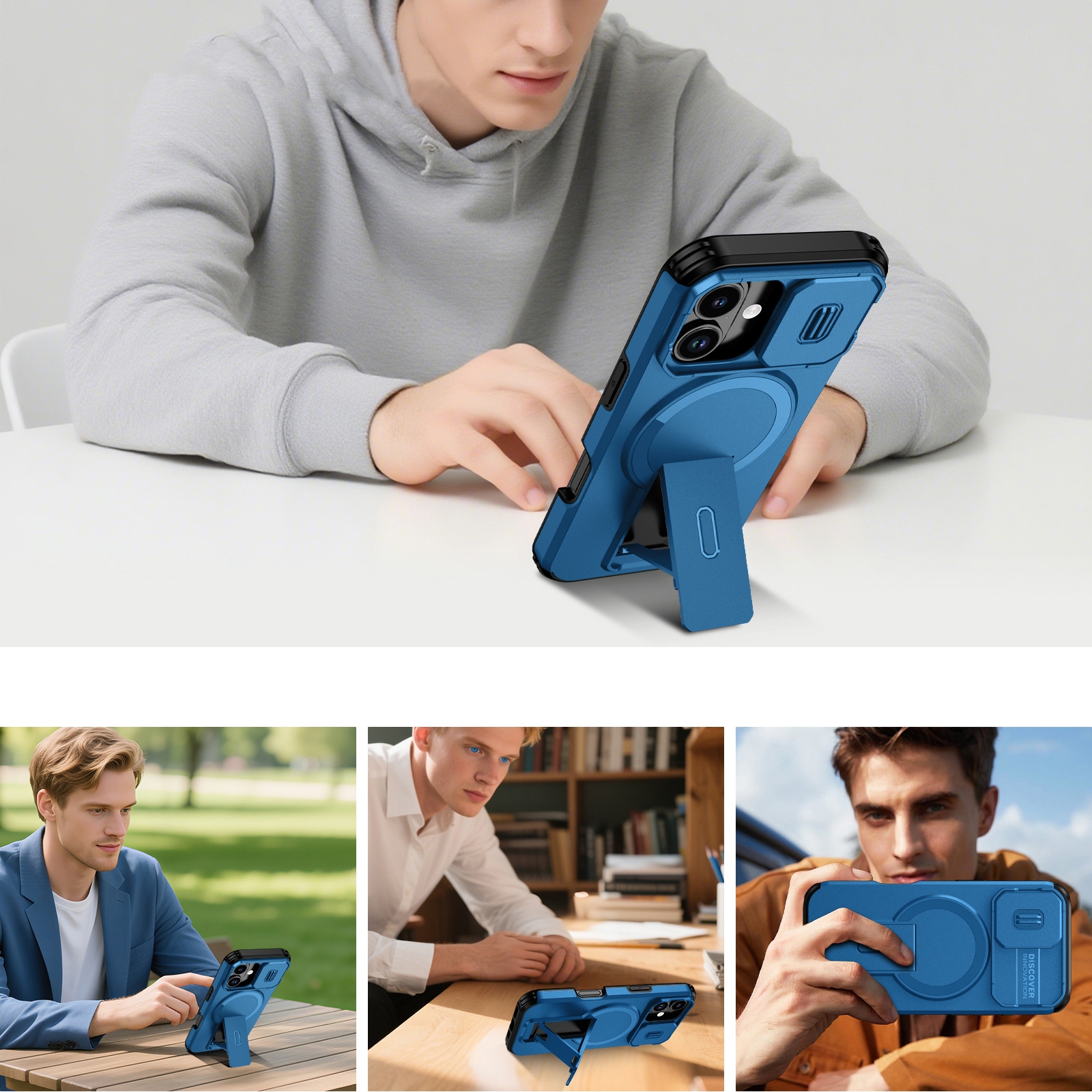 360 Rotation Kickstand Magnetic iPhone 17 Case - Airbag Shockproof, Blue