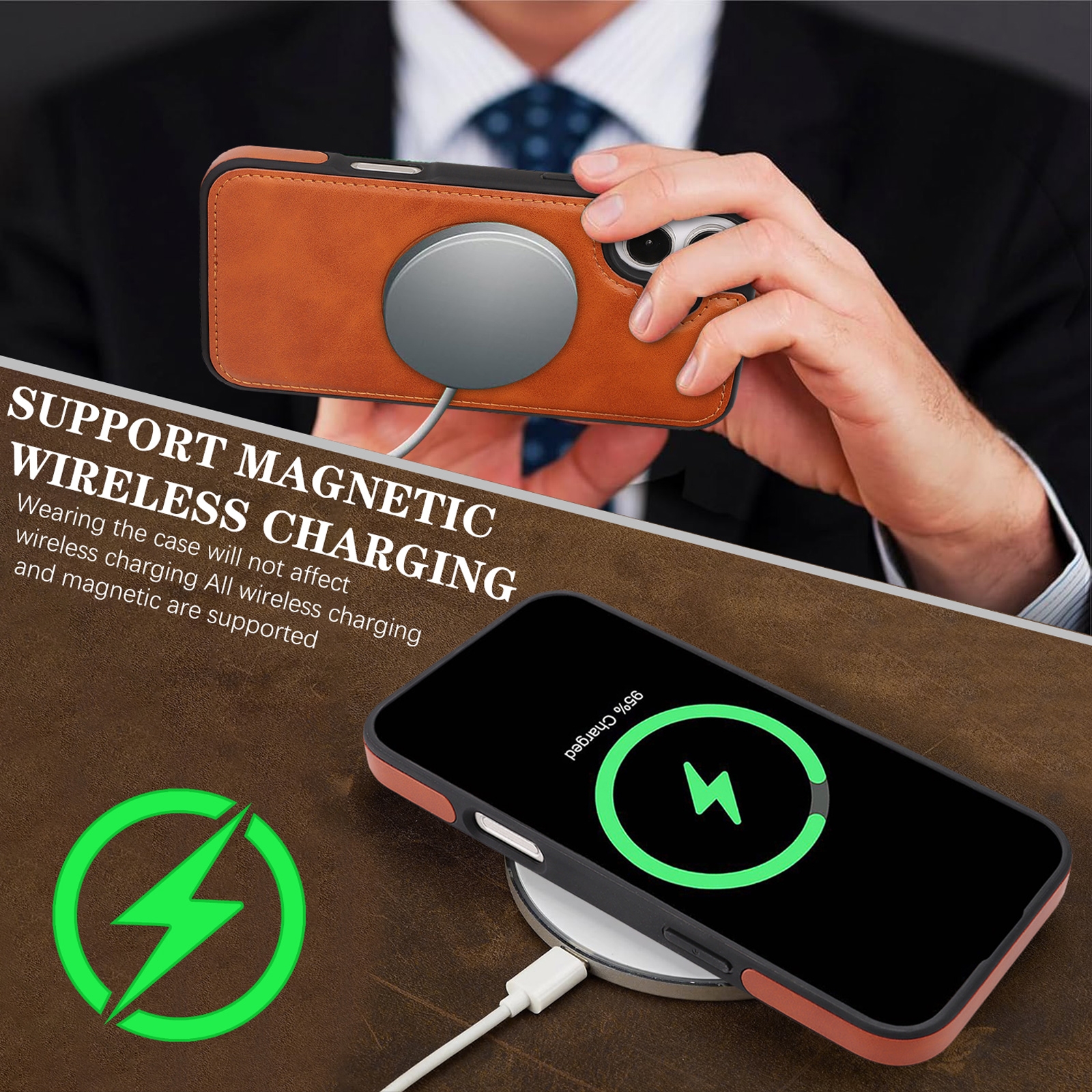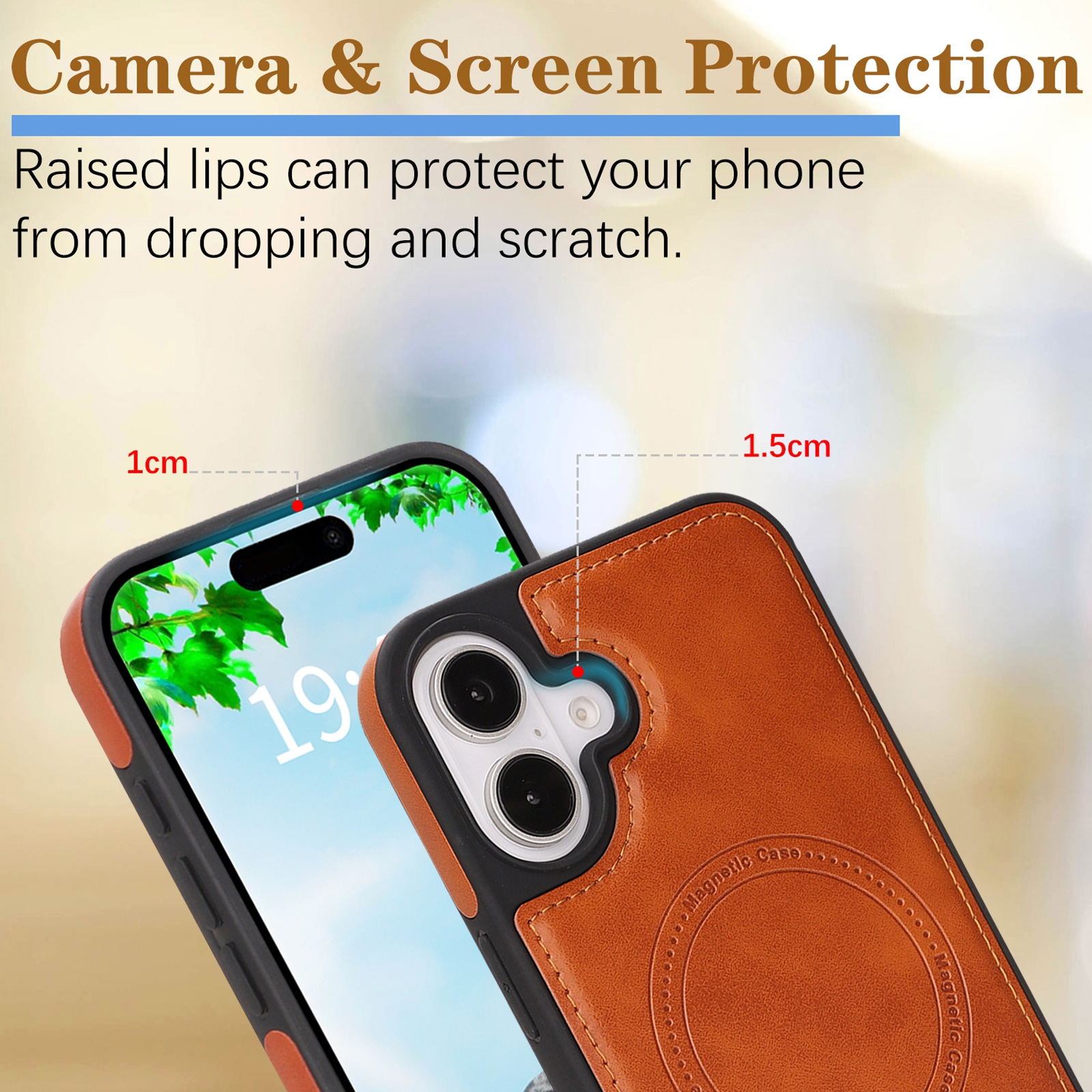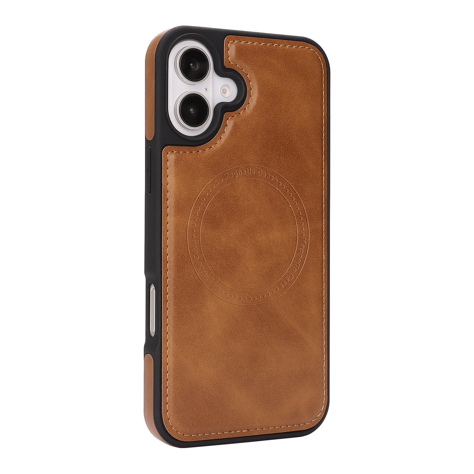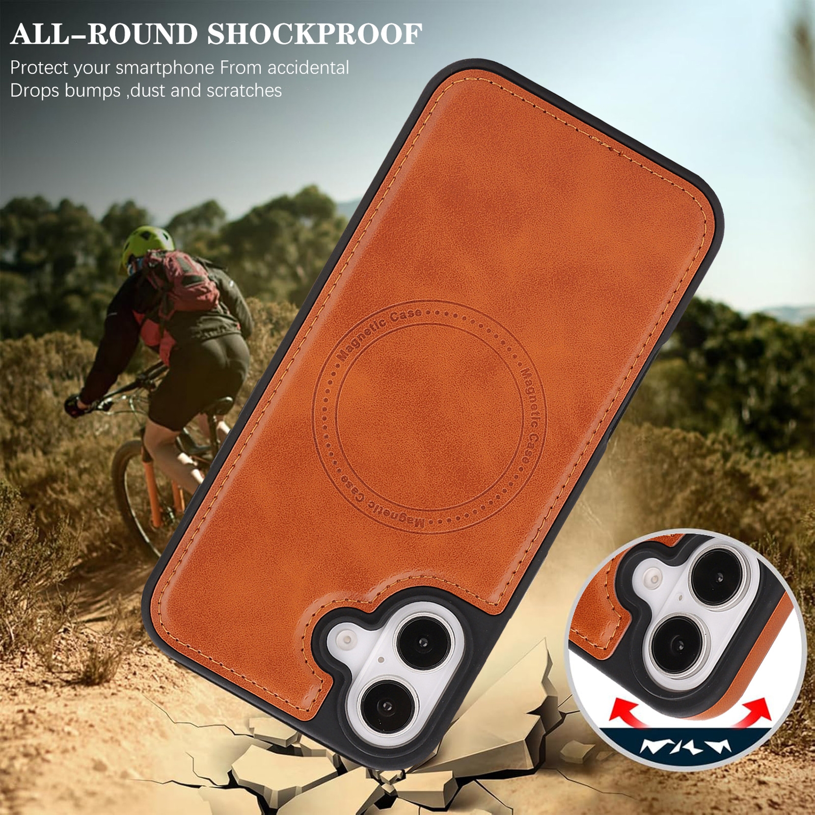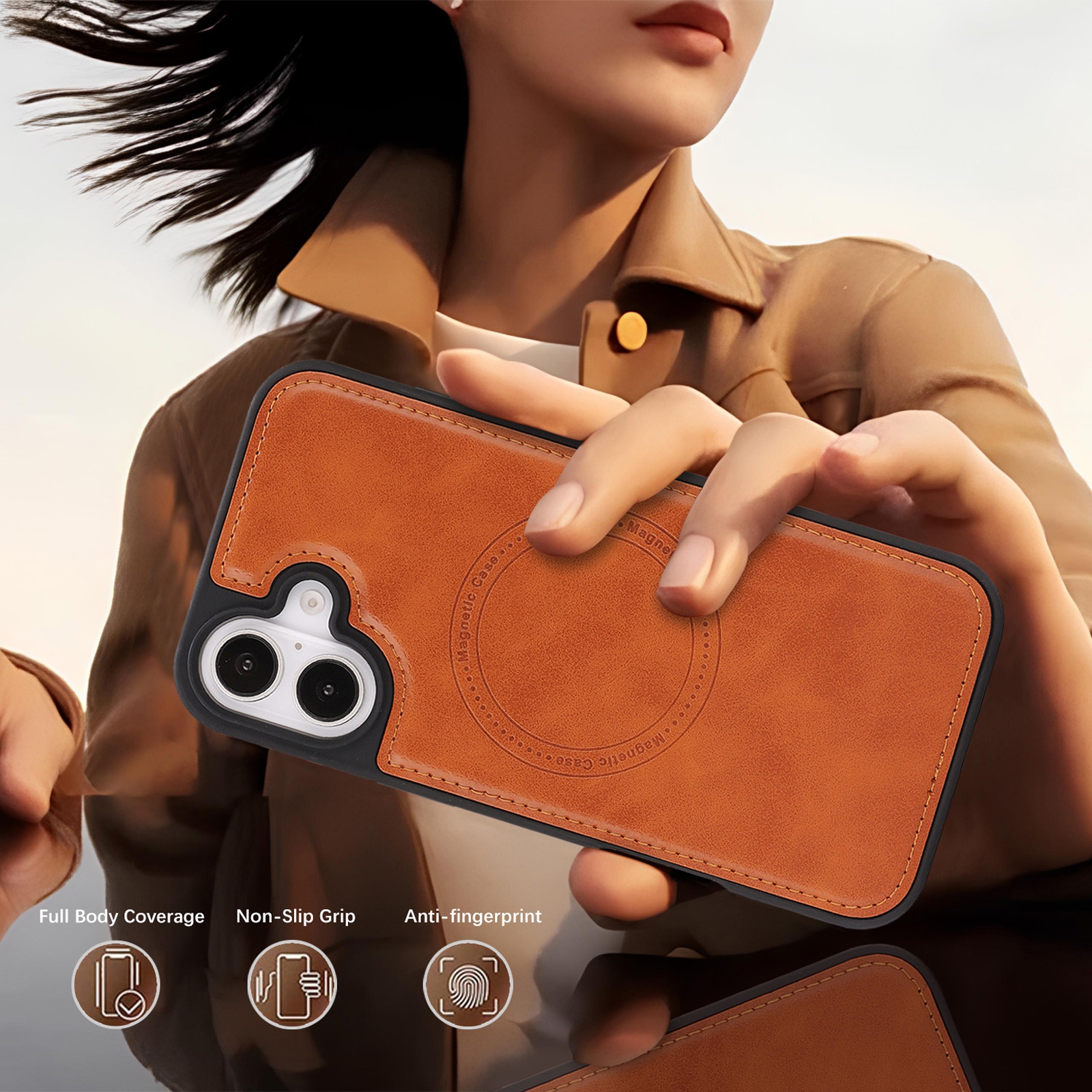 iPhone 17 Magnetic Case – Vegan Leather Shockproof MagSafe Cover Light Brown