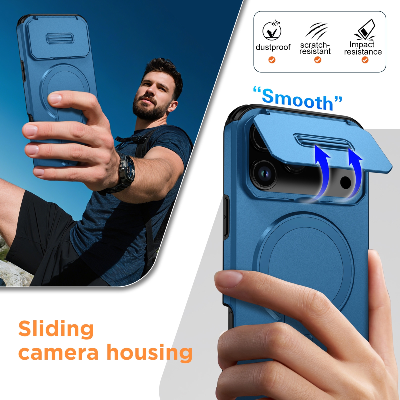 - Flip-open Camera Lens Coverl - conceals the lenses, providing physical protection against scratches, dust accumulation, and impacts while maintaining privacy.
