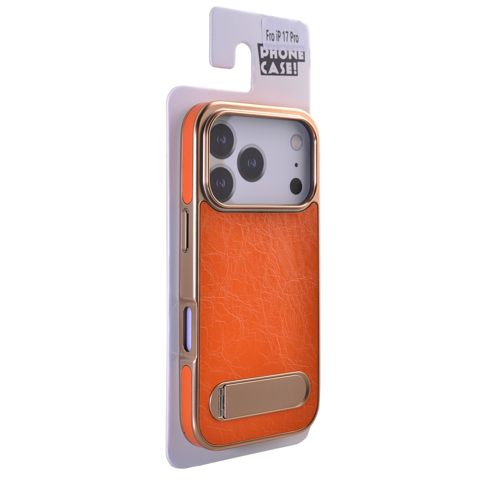 iPhone 17 Pro PU Leather Case – Calf-Pattern Back Cover Orange
