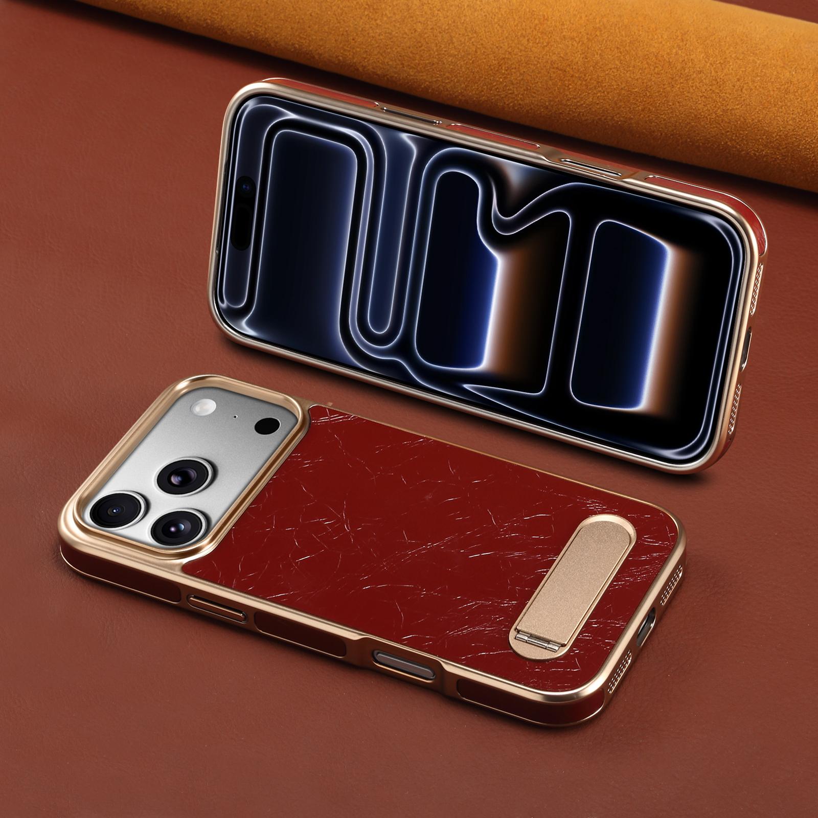 Top-Grain Leather Single-Stand Electroplated Case for iPhone 17 Pro, Red