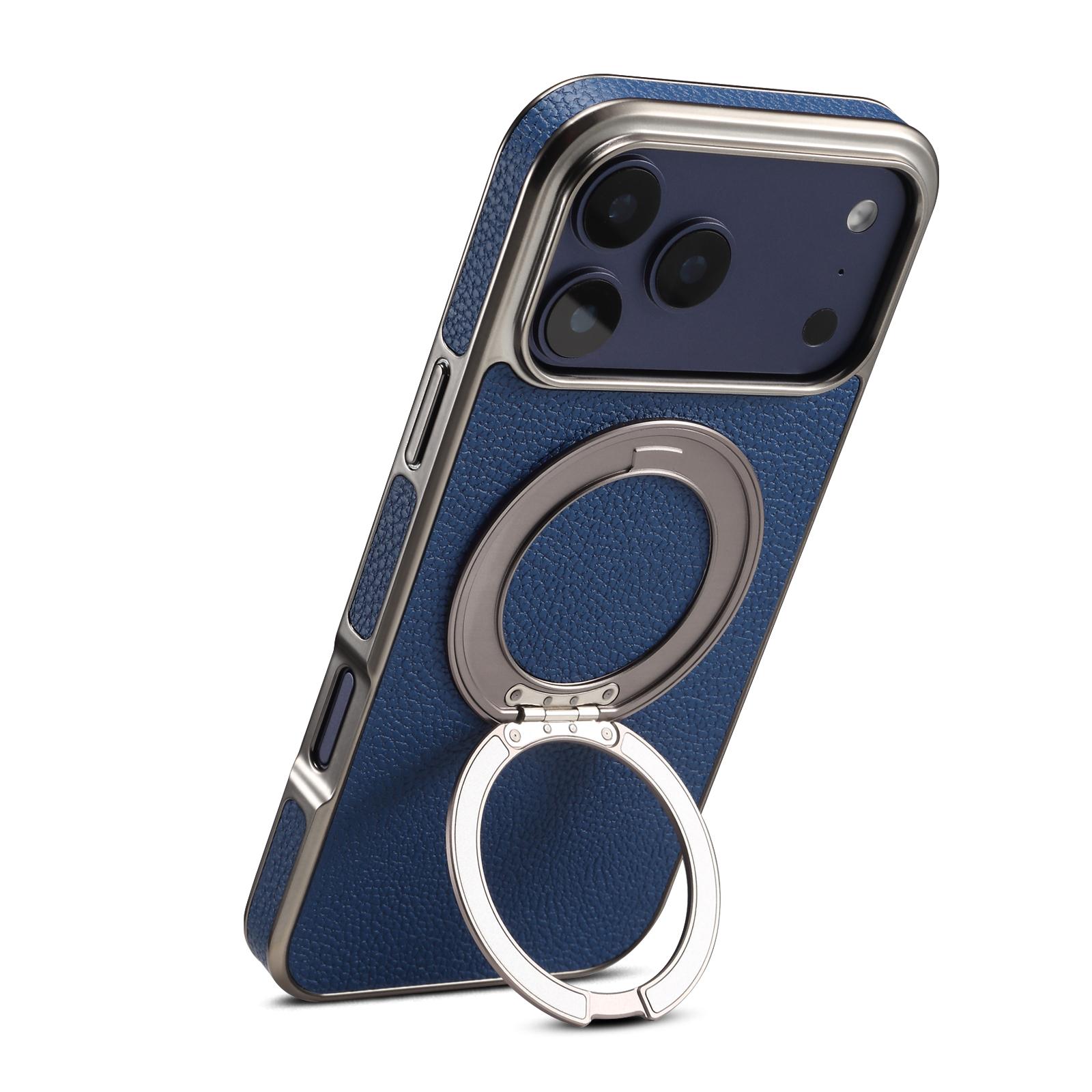 Lychee Texture 360 Rotating Gear Kickstand Electroplated Case for iPhone 17 Pro, Blue