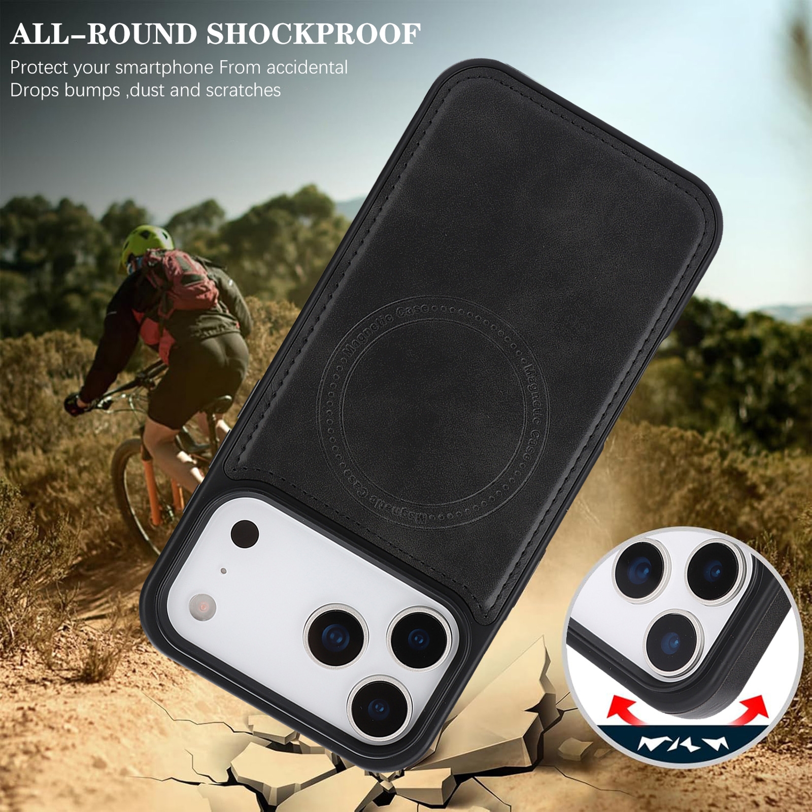 iPhone 17 Pro Magnetic Case – Vegan Leather Shockproof MagSafe Cover Black