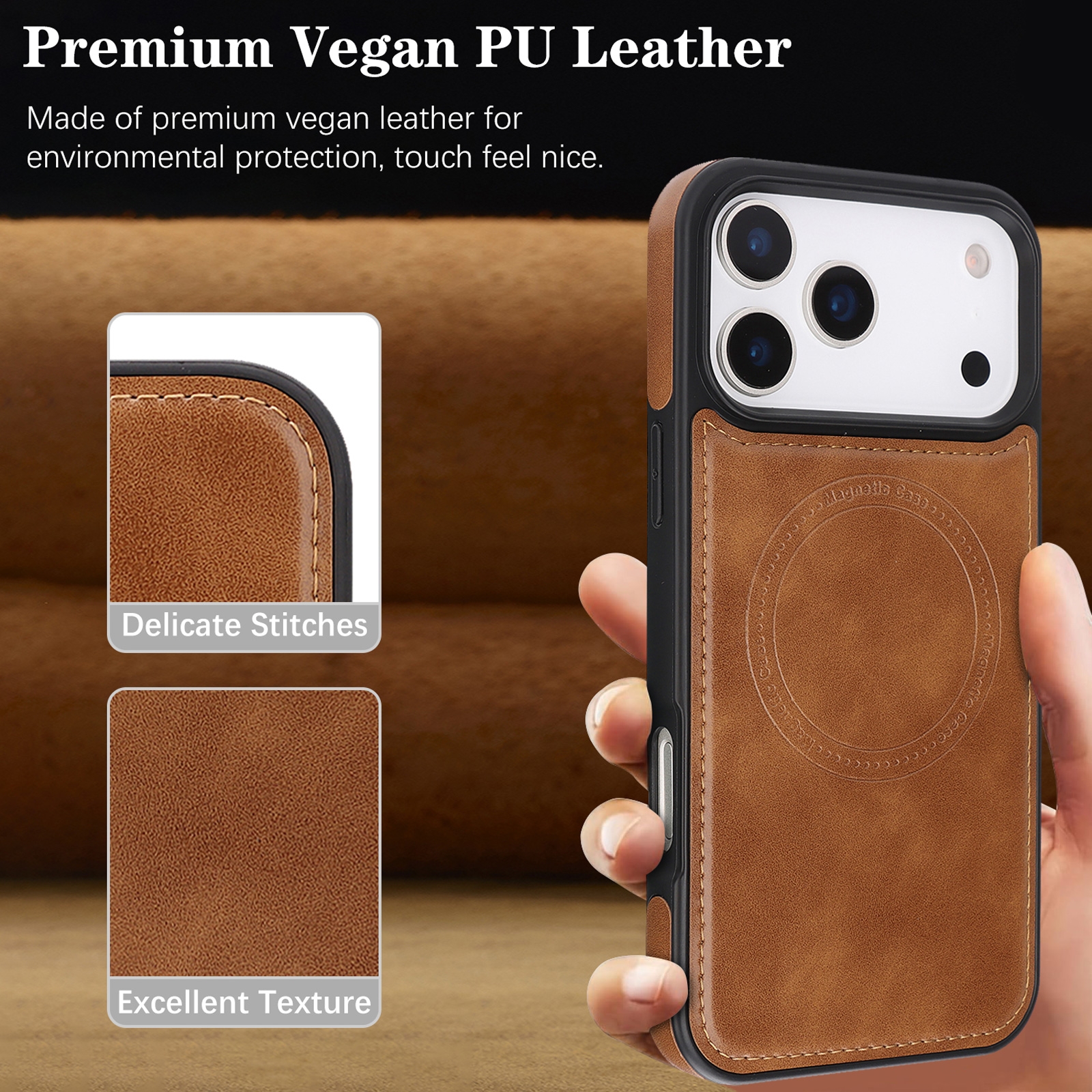 iPhone 17 Pro Magnetic Case – Vegan Leather Shockproof MagSafe Cover Brown