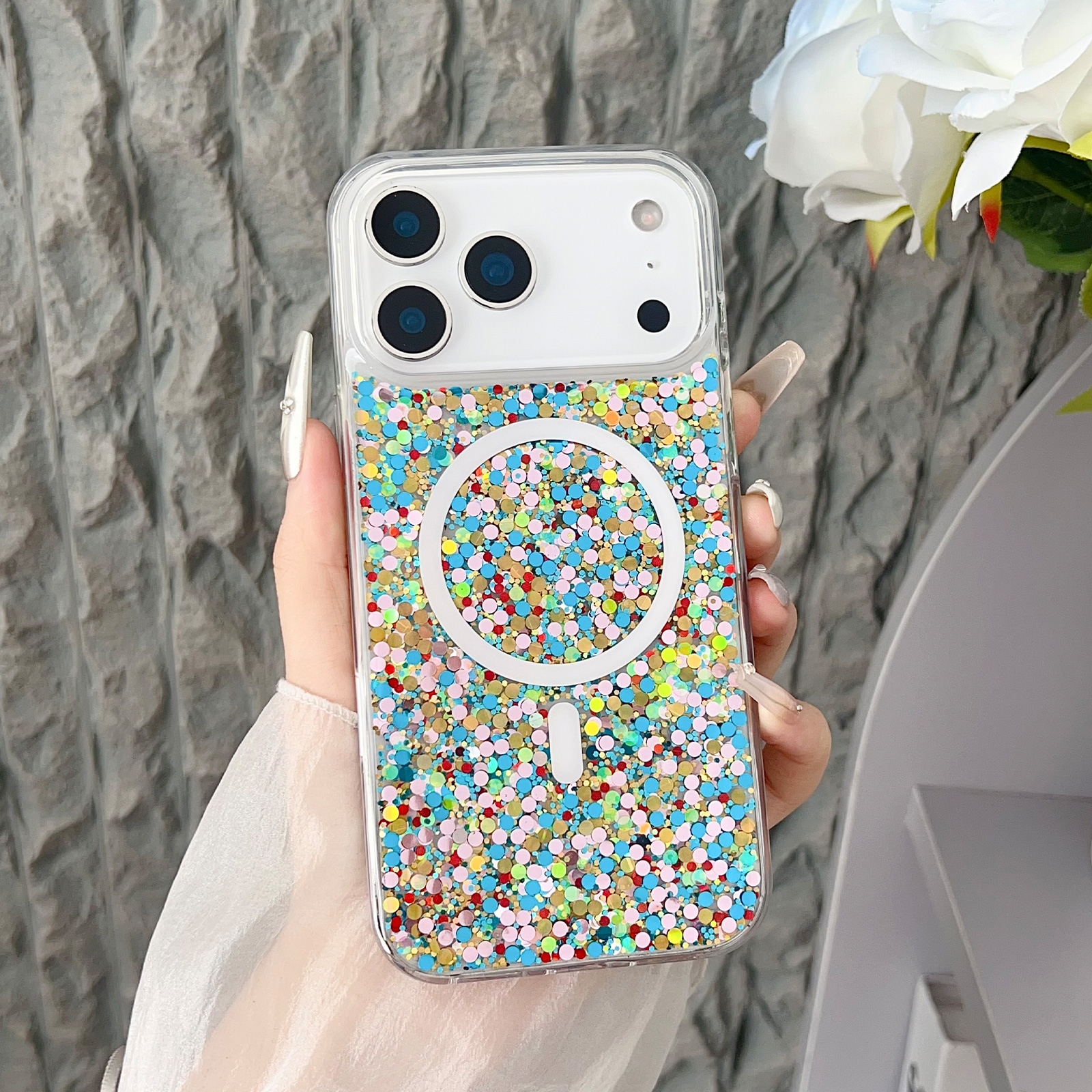 iPhone 17 Pro Magnetic Epoxy Case – Durable Colorful Dot Design