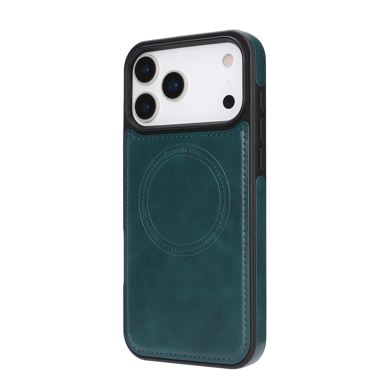 iPhone 17 Pro Magnetic Case - Vegan Leather Shockproof MagSafe Cover Dark Green