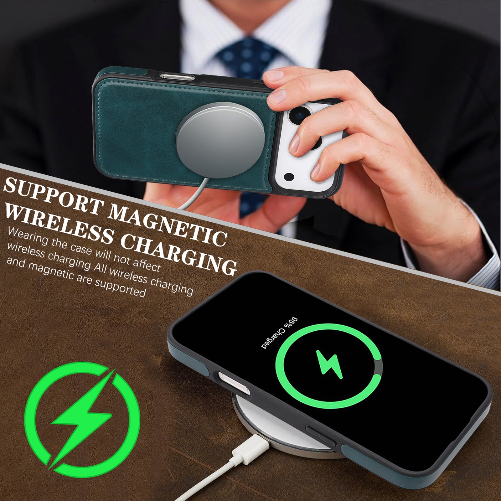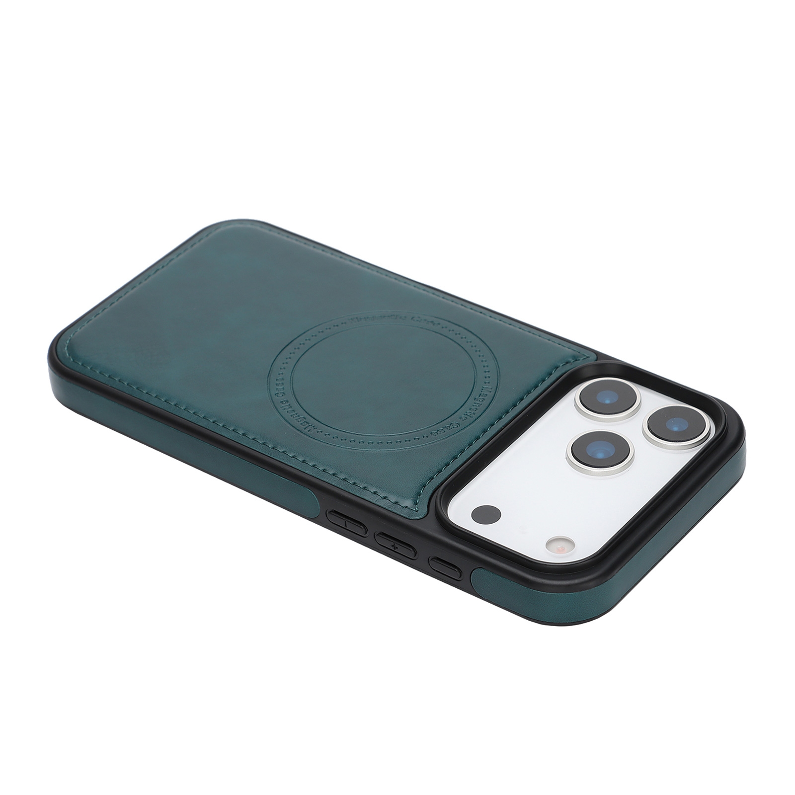iPhone 17 Pro Magnetic Case – Dark Green PU Leather Design