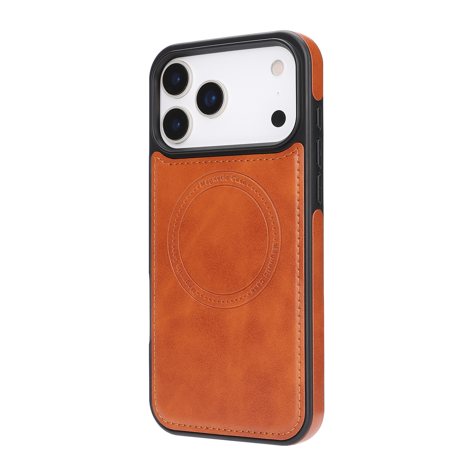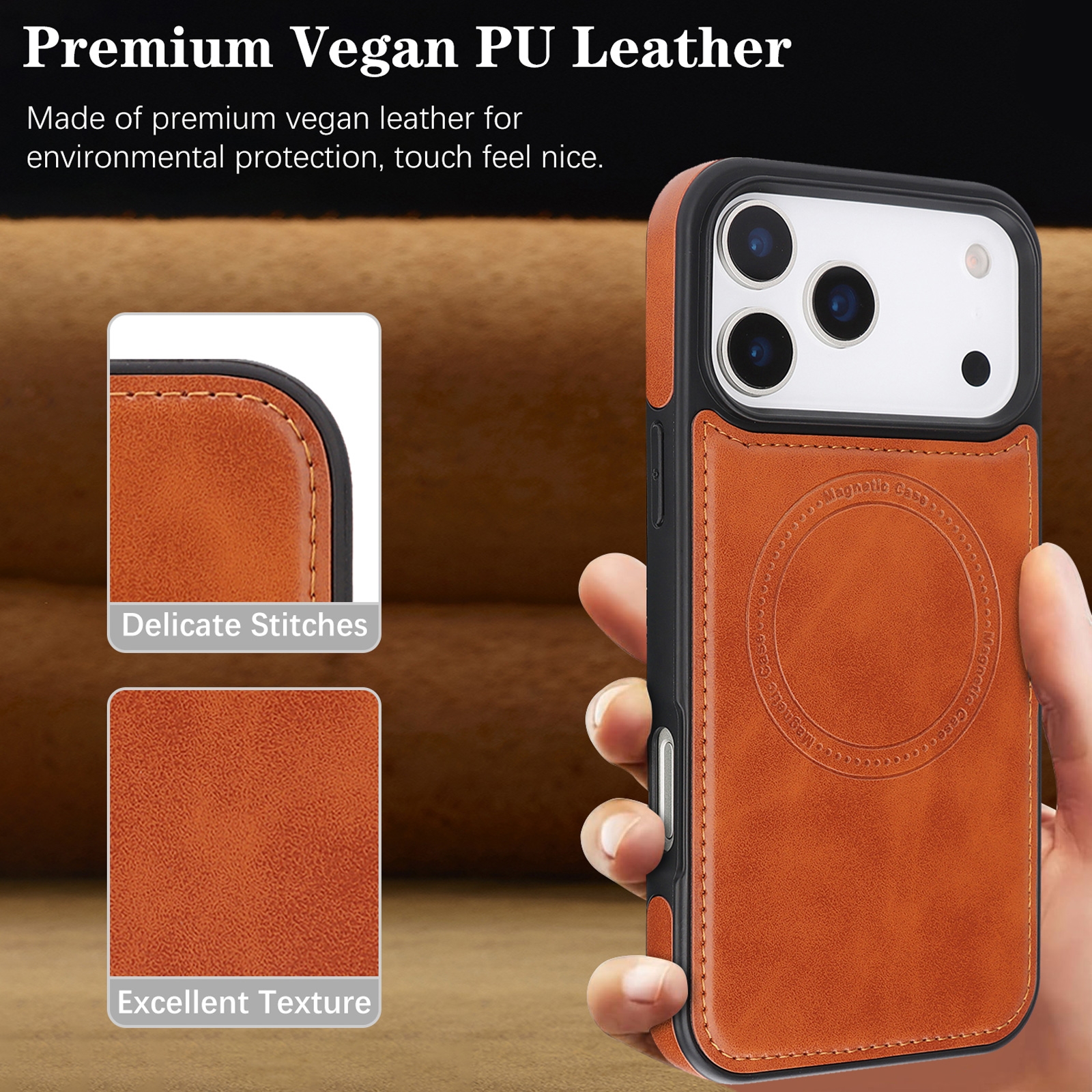 iPhone 17 Pro Magnetic Case - Vegan Leather Shockproof MagSafe Cover Light Brown
