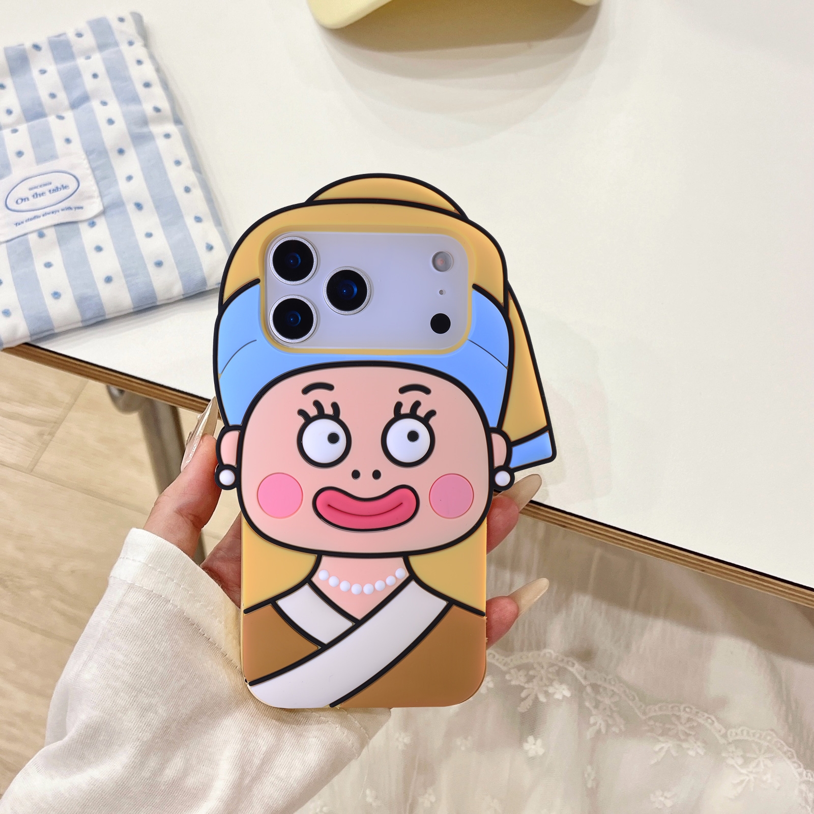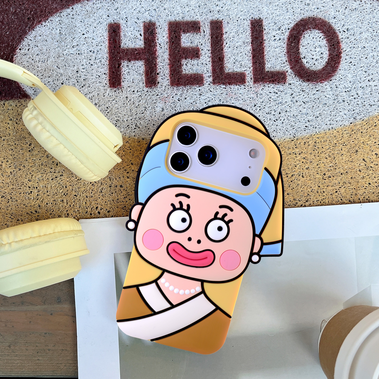 - Comical 3D Sculpted Design: Distinctive oversized 3D rendition of the "Sausage Girl with a Pearl Earring" in layered silicone.