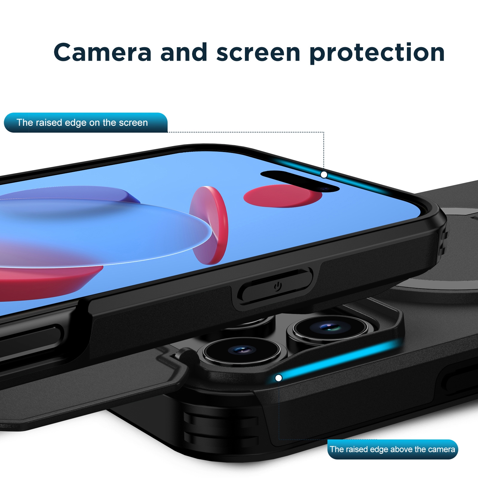 360 Rotation Kickstand Magnetic iPhone 17 Pro Max Case - Airbag Shockproof, Black