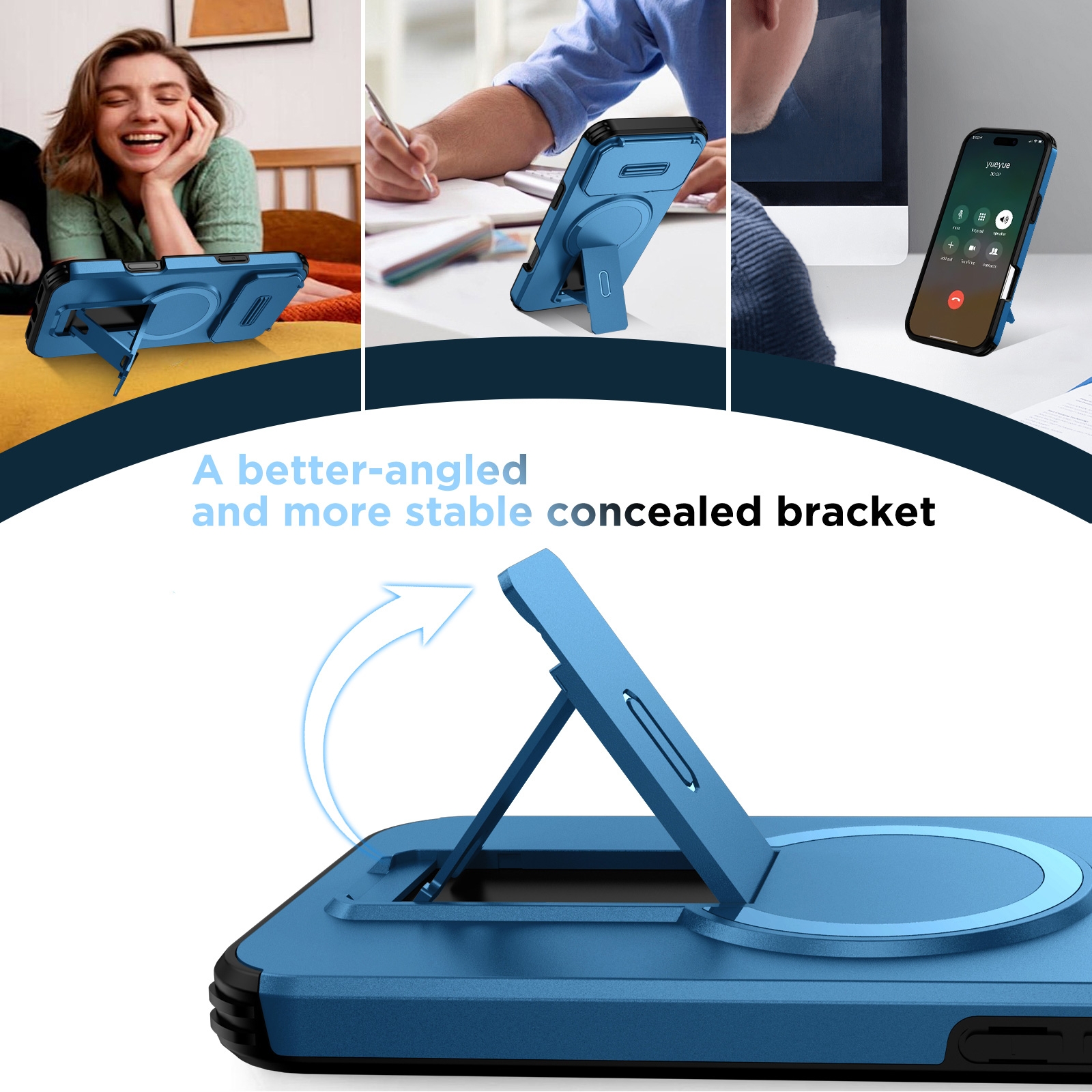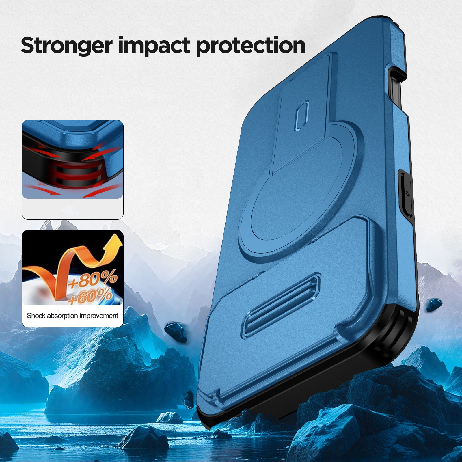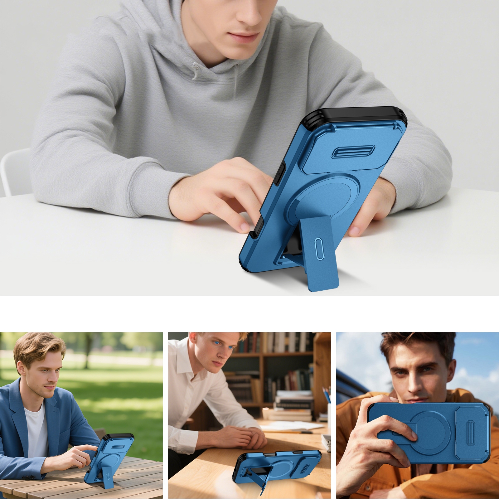 360 Rotation Kickstand Magnetic iPhone 17 Pro Max Case - Airbag Shockproof, Blue
