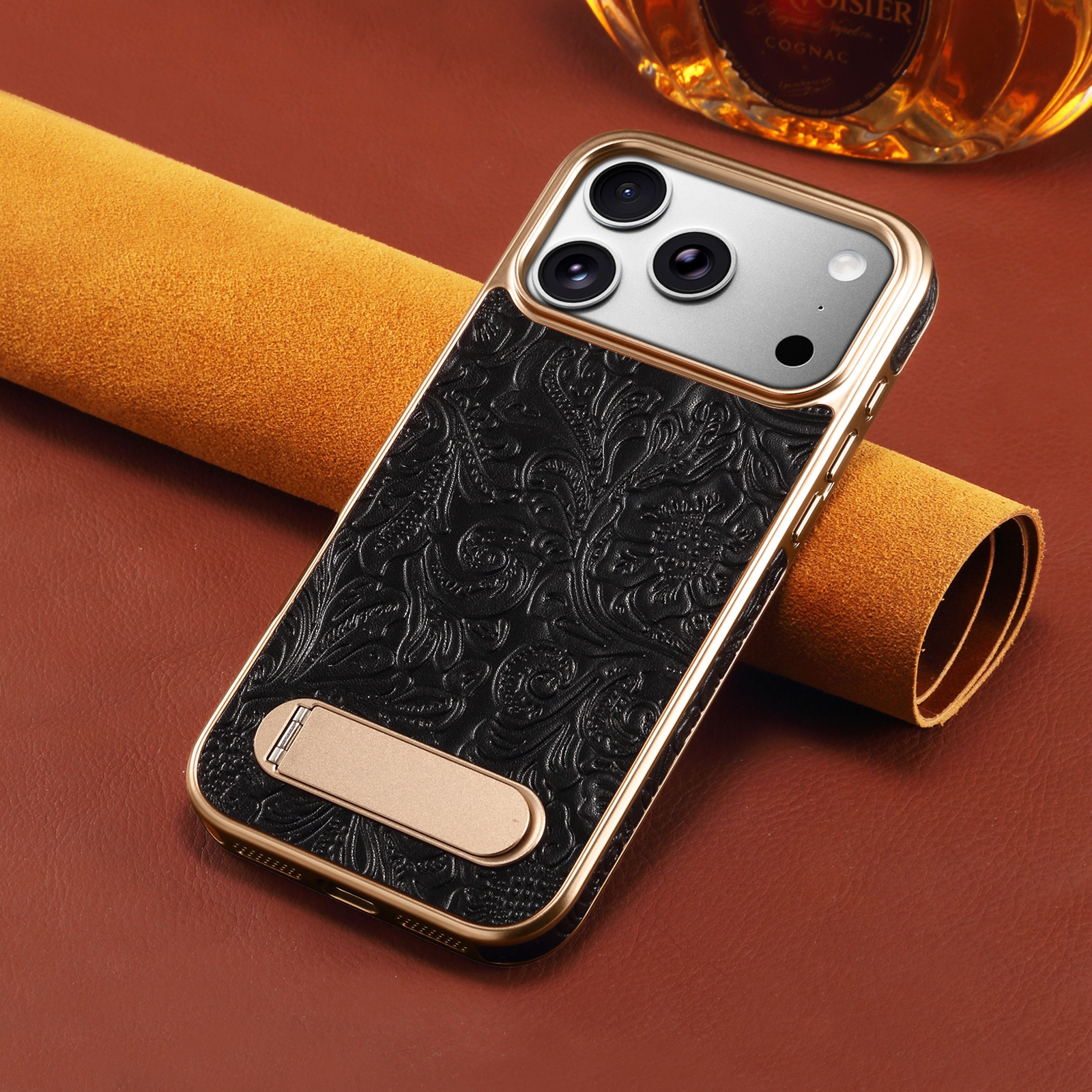 iPhone 17 Pro Max Leather Case – SYL Cowhide, Vintage Tang Pattern Black