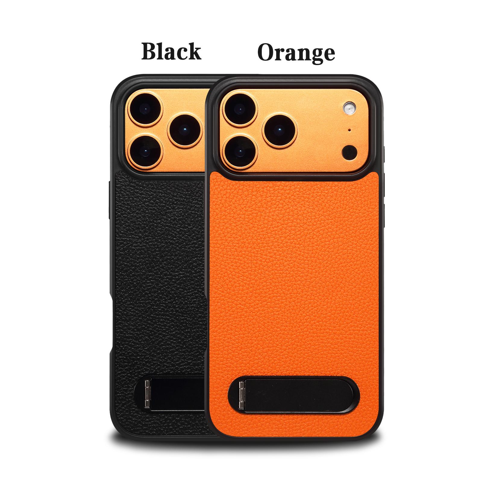 Lychee Texture Kickstand Case for iPhone 17 Pro Max, Black