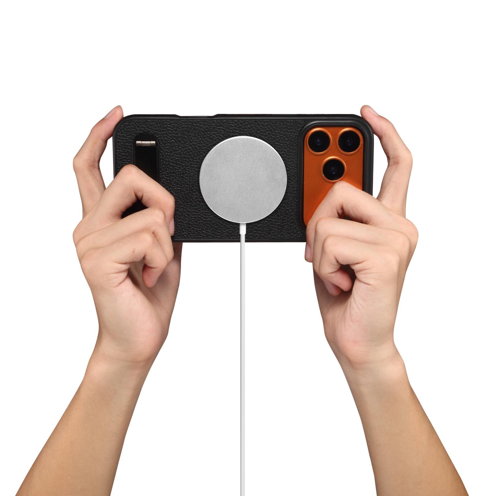 All pictures shown are for illustration purpose only. Actual product may vary due to product enhancement.Denior Lychee Texture Kickstand Phone Case for iPhone 17 Pro Max | PU Faux Leather | Wireless Charging Supported - Black