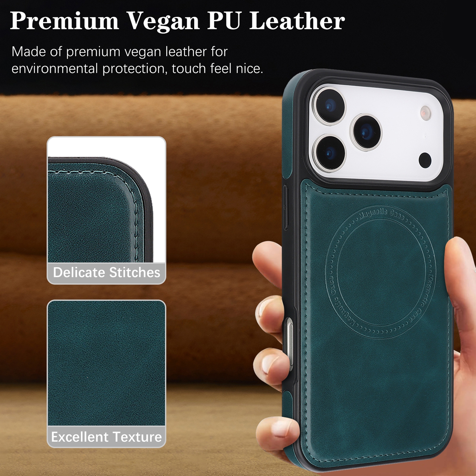 iPhone 17 Pro Max Magnetic Case – Vegan Leather Shockproof MagSafe Cover Dark Green