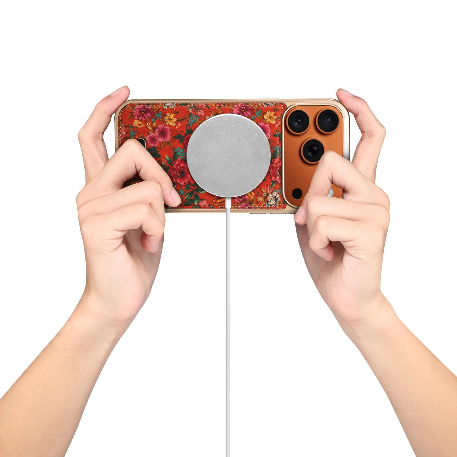 All pictures shown are for illustration purpose only. Actual product may vary due to product enhancement.Denior Printed Magnetic Detachable Electroplated Phone Case for iPhone 17 Pro Max | Cork Material | Wireless Charging Supported - Peony Red