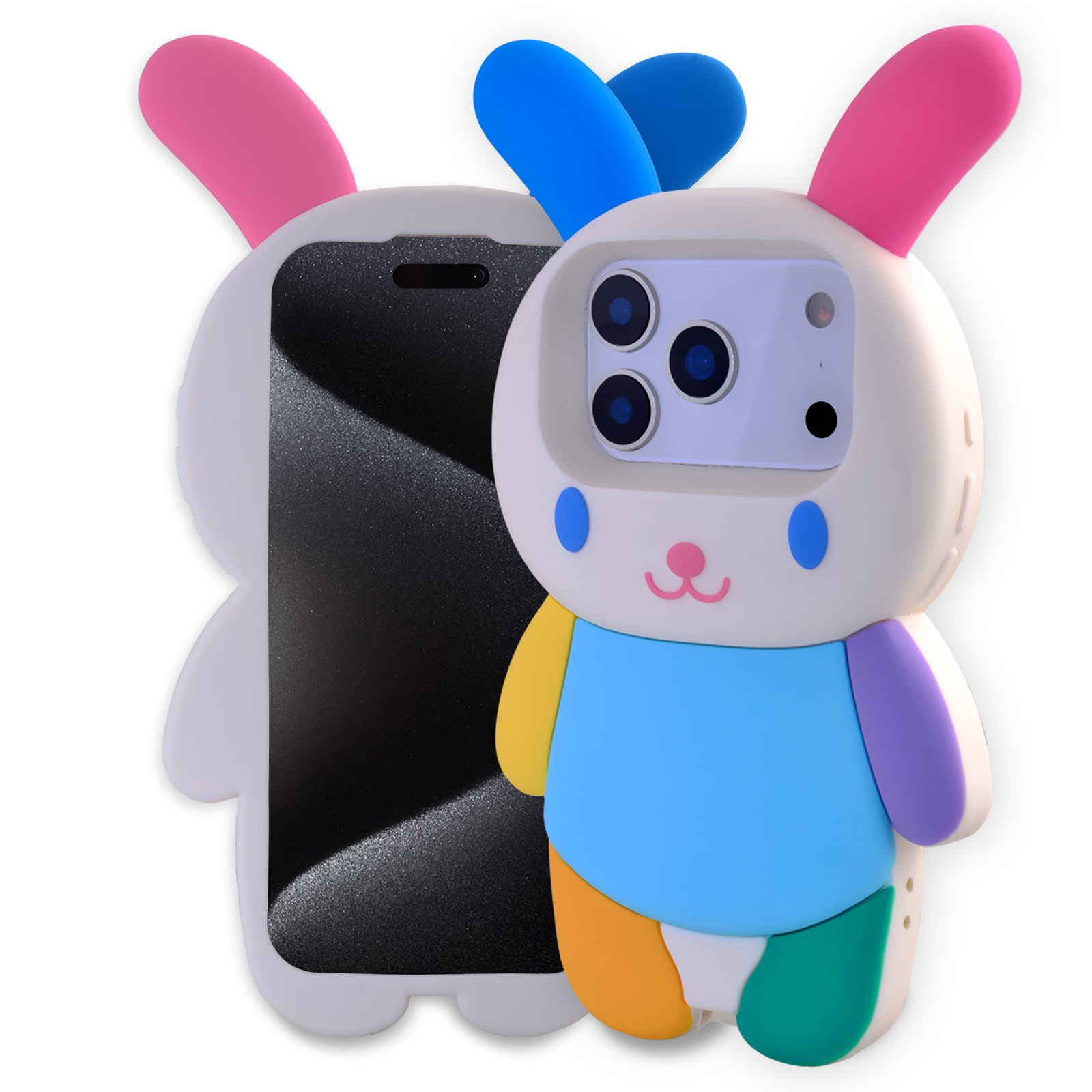 iPhone 17 Pro Rabbit Silicone Protective Phone Case – Rainbow Color
