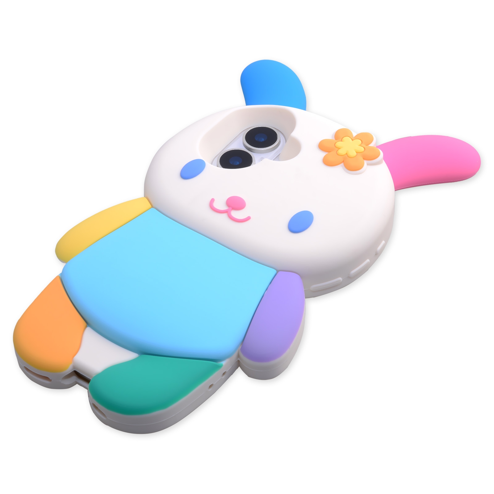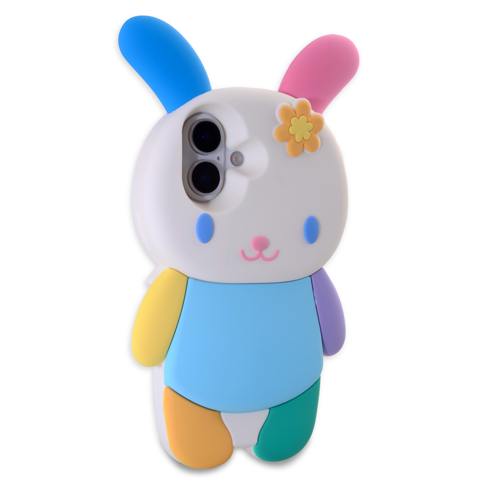 iPhone 16/17 Rabbit Silicone Protective Phone Case – Rainbow Color