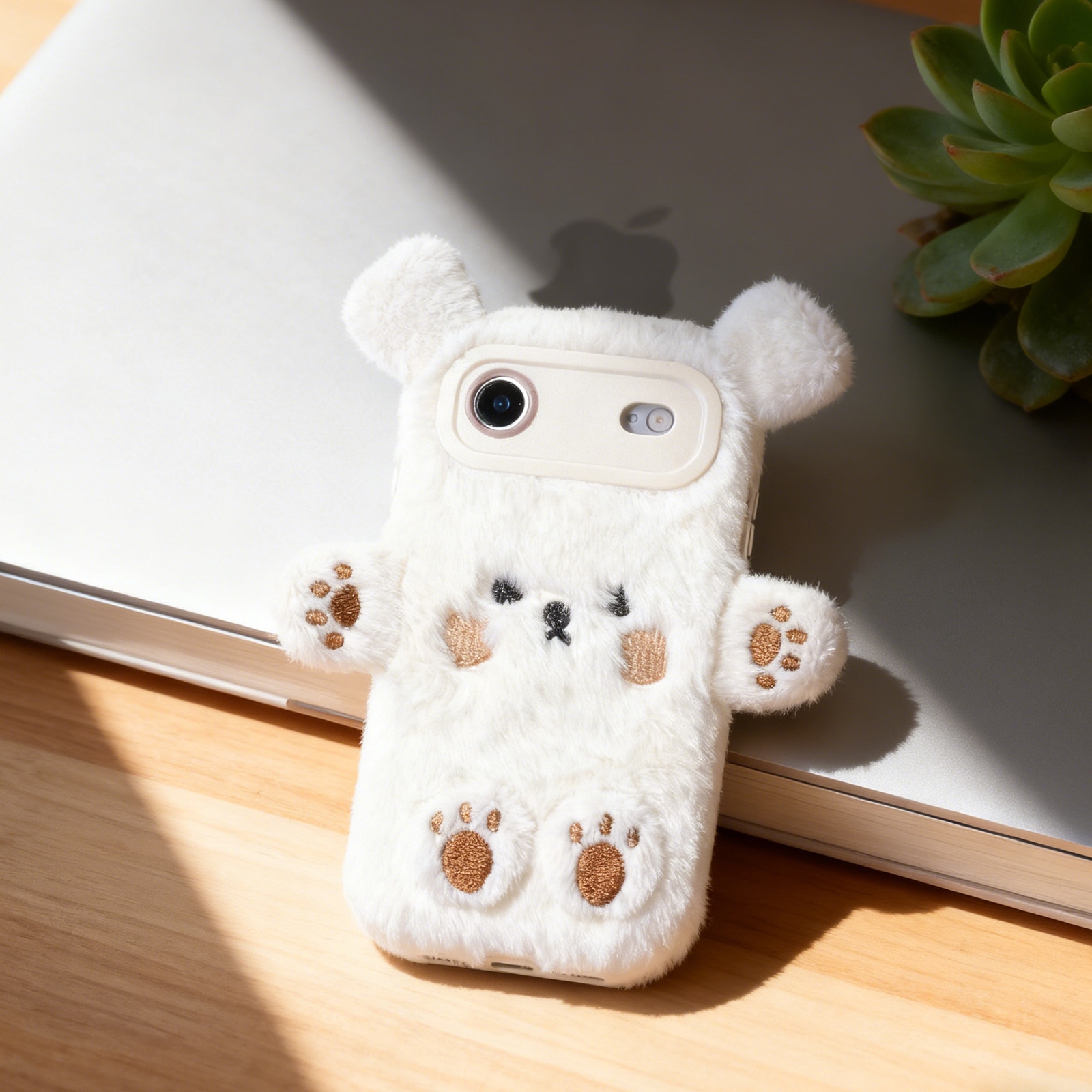 White Plush Silicone Bear Phone Case for iPhone Air – Soft Furry Cute Protective Cover