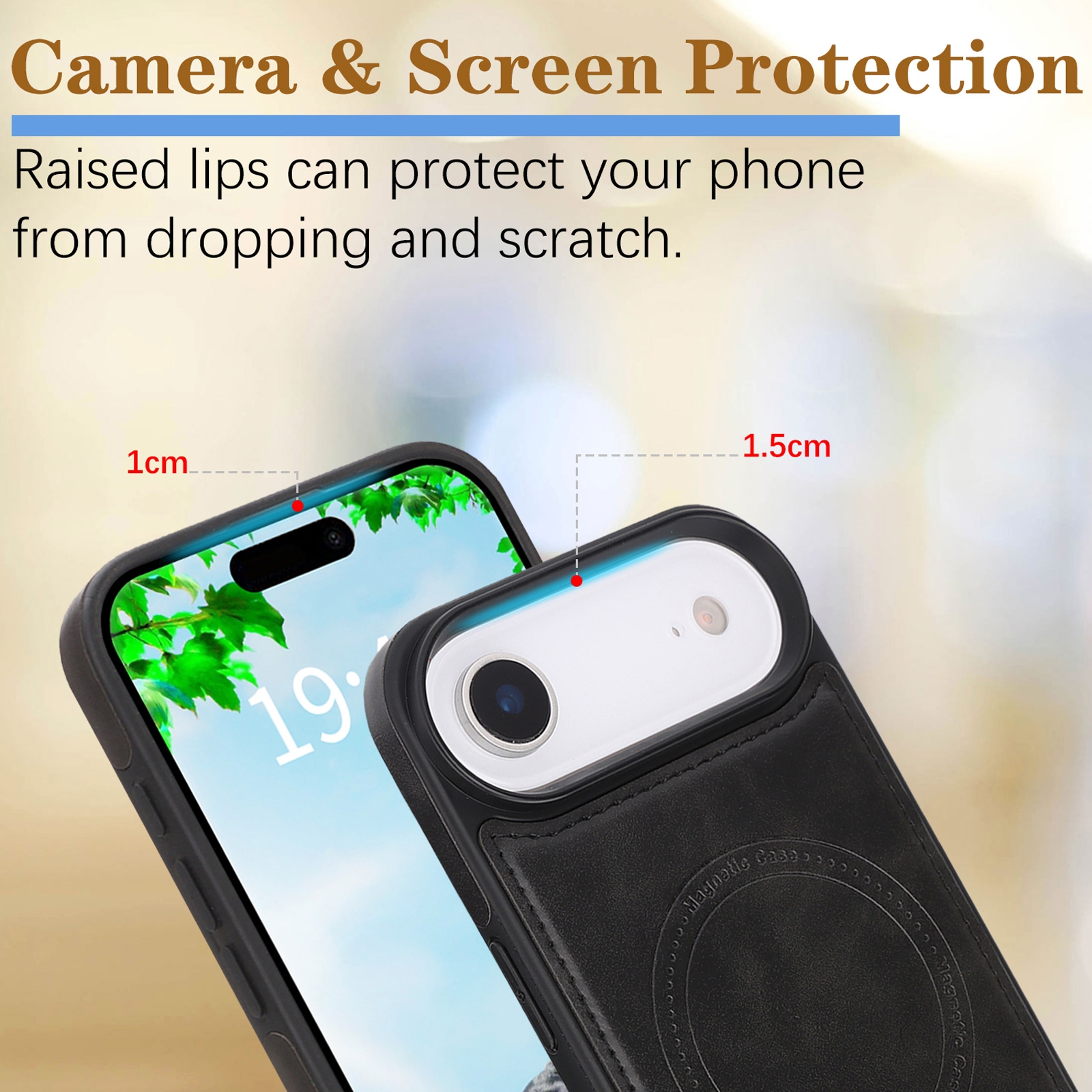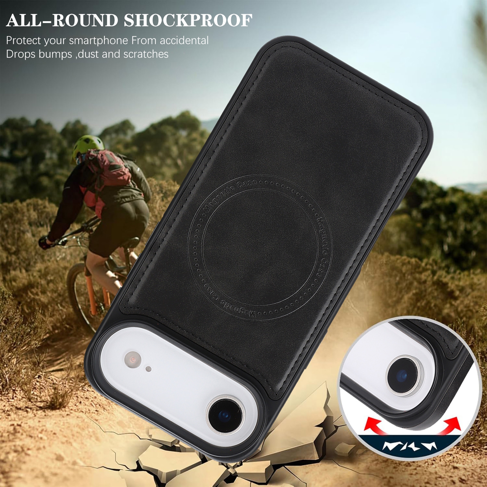 iPhone Air Magnetic Case – Vegan Leather Shockproof MagSafe Cover Black