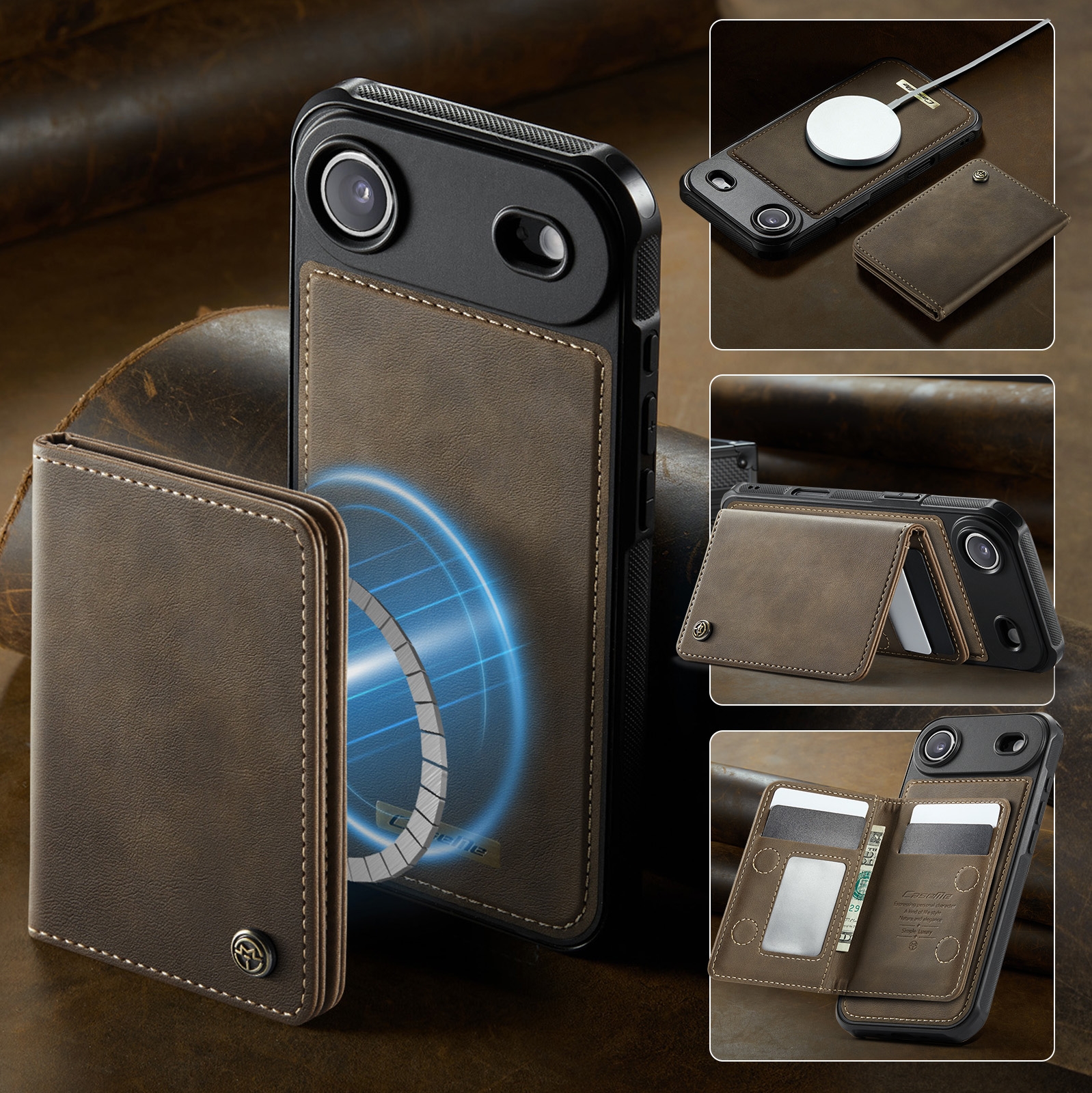 iPhone Air Magnetic Case with Card Holders, Brown