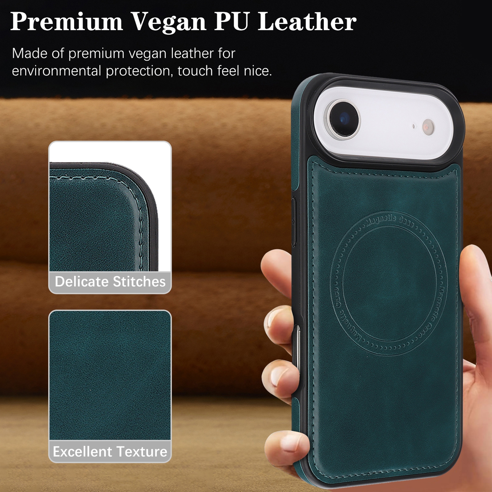 iPhone Air Magnetic Case – Vegan Leather Shockproof MagSafe Cover Dark Green