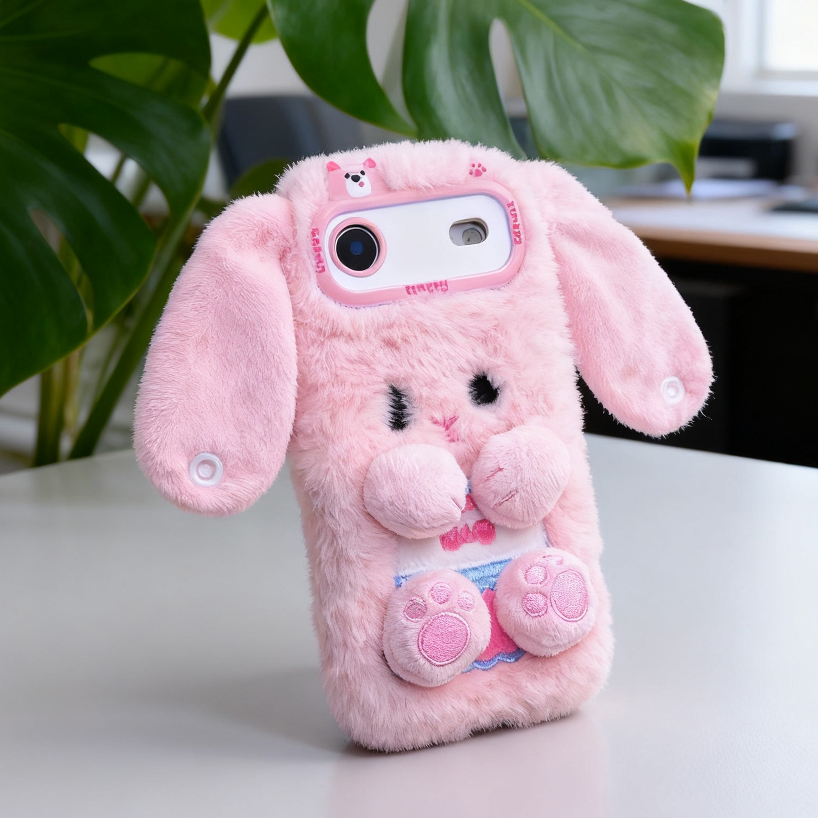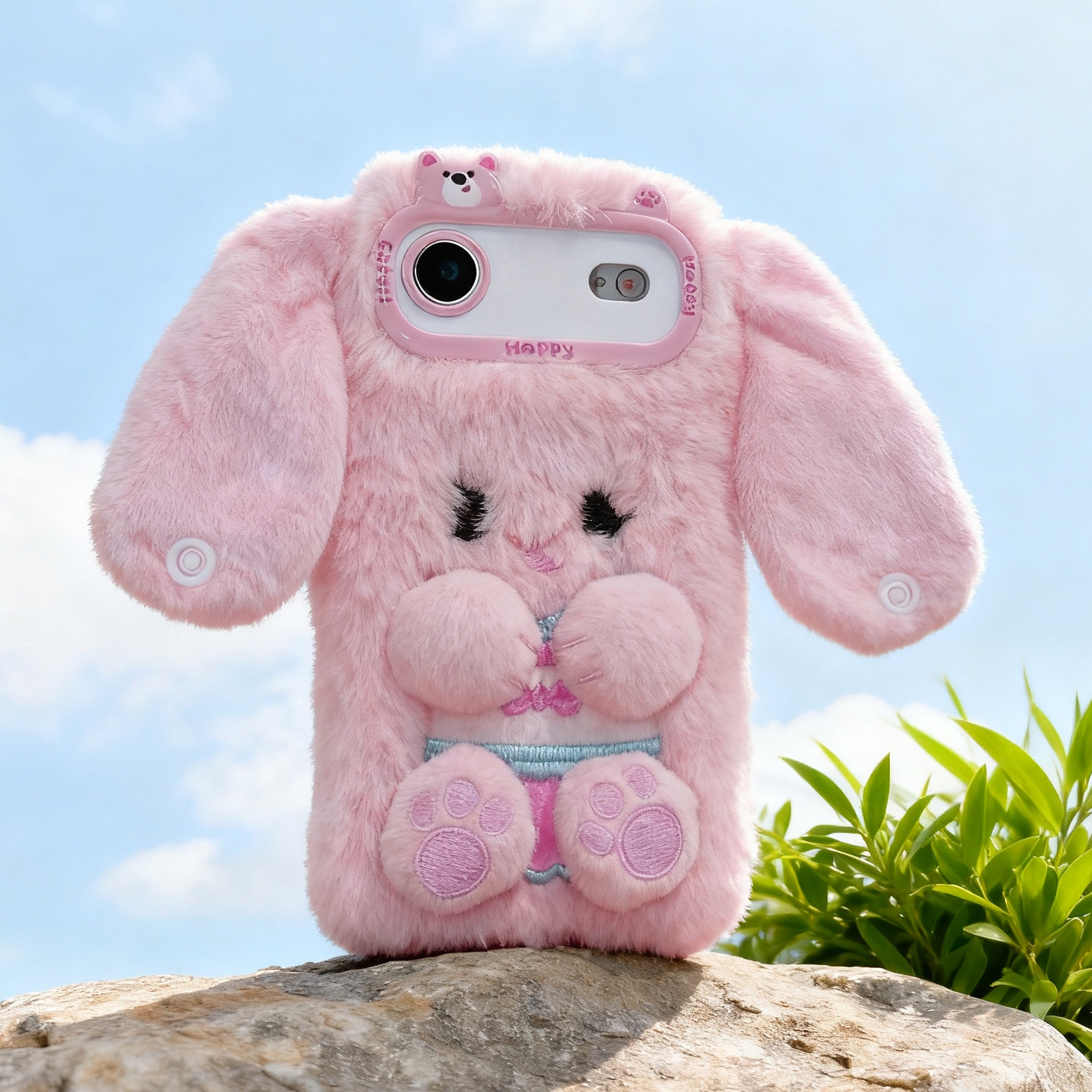 iPhone 17 Air Rabbit Case – Pink Long-Eared Plush Design
