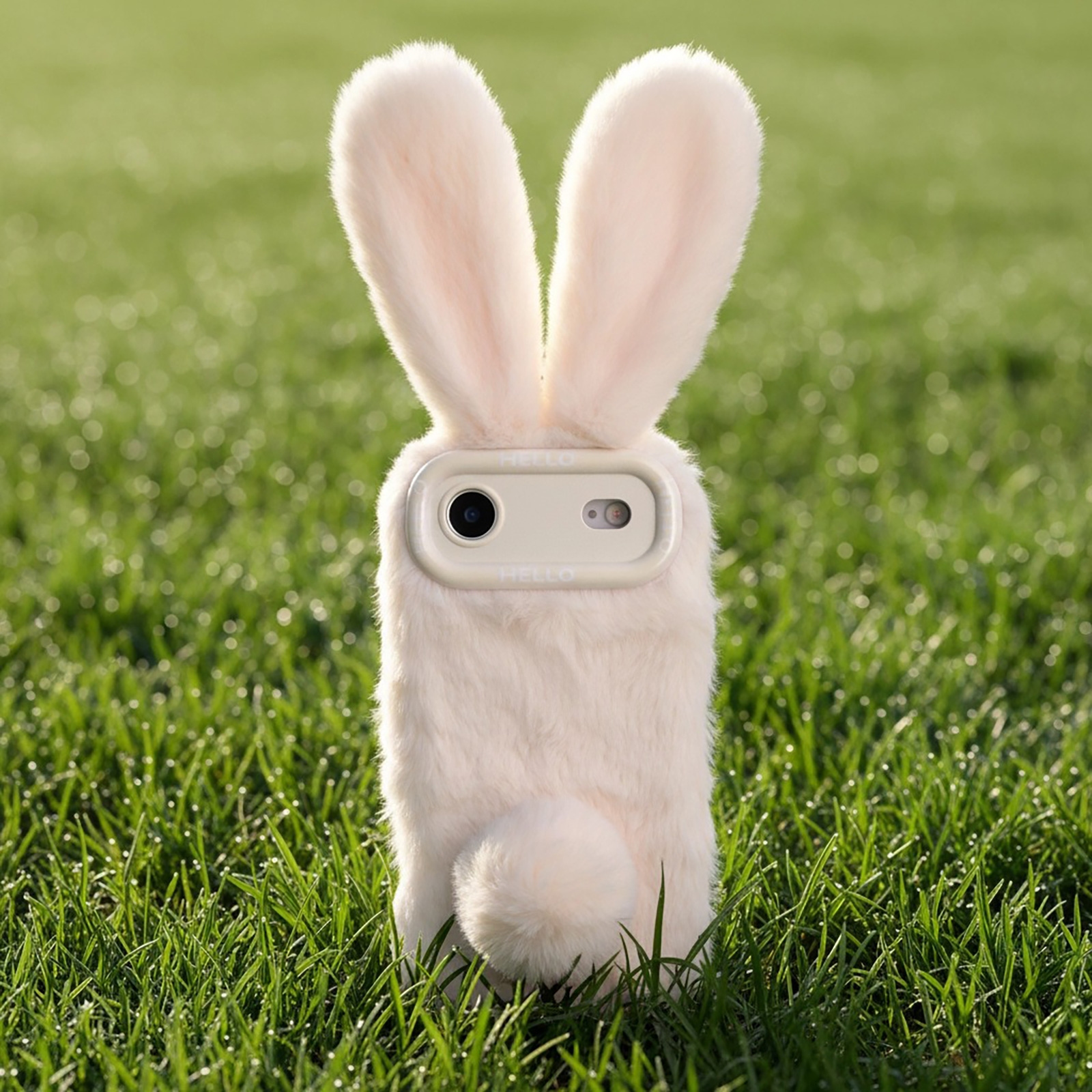 - Soft Plush Exterior: Covered in beige fuzzy material resembling rabbit fur, with ears and a tail accent.