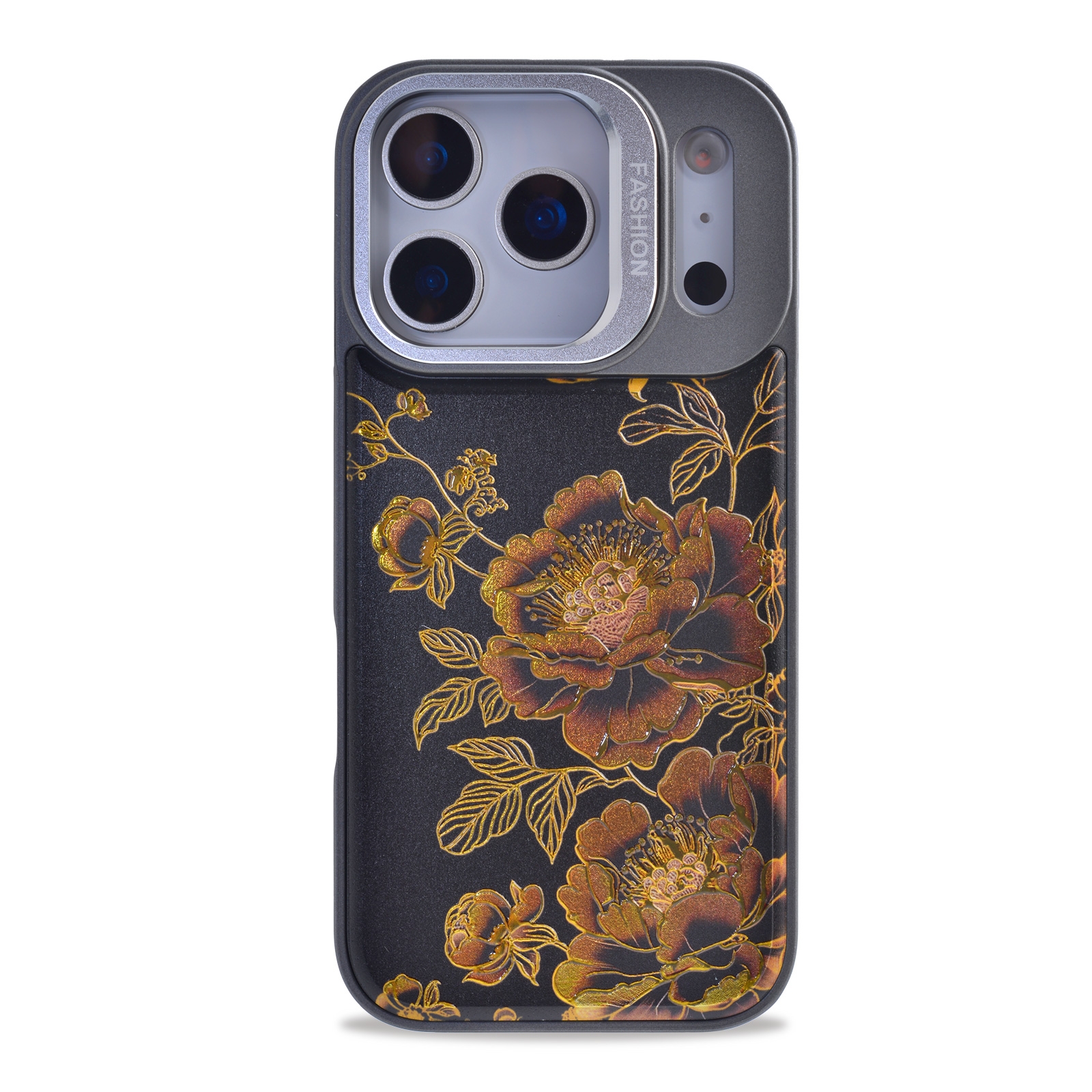 iPhone17 Pro Black Background Gilded Peony Magnetic Case,Gold