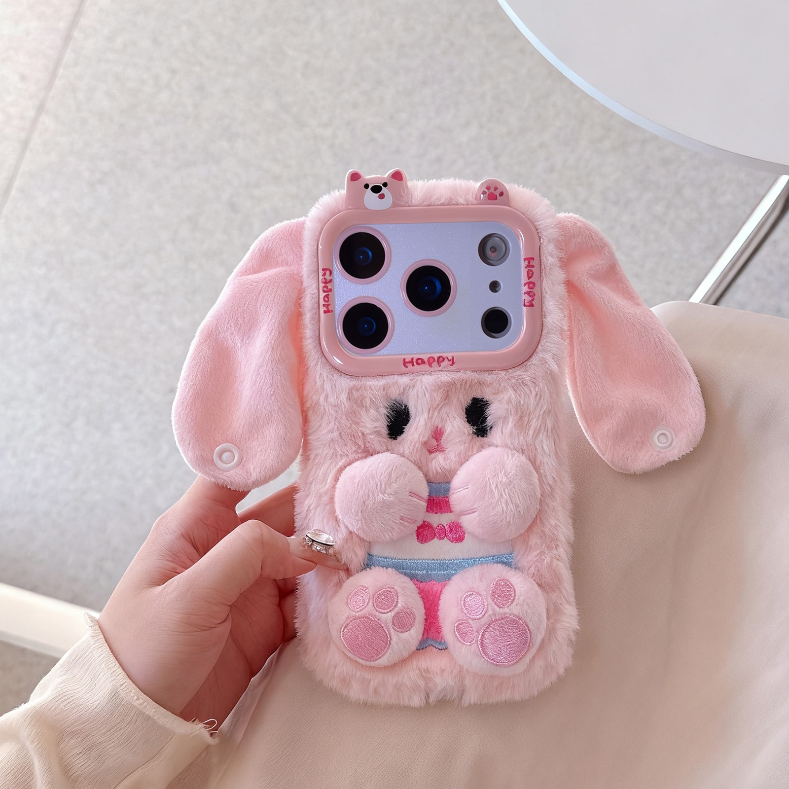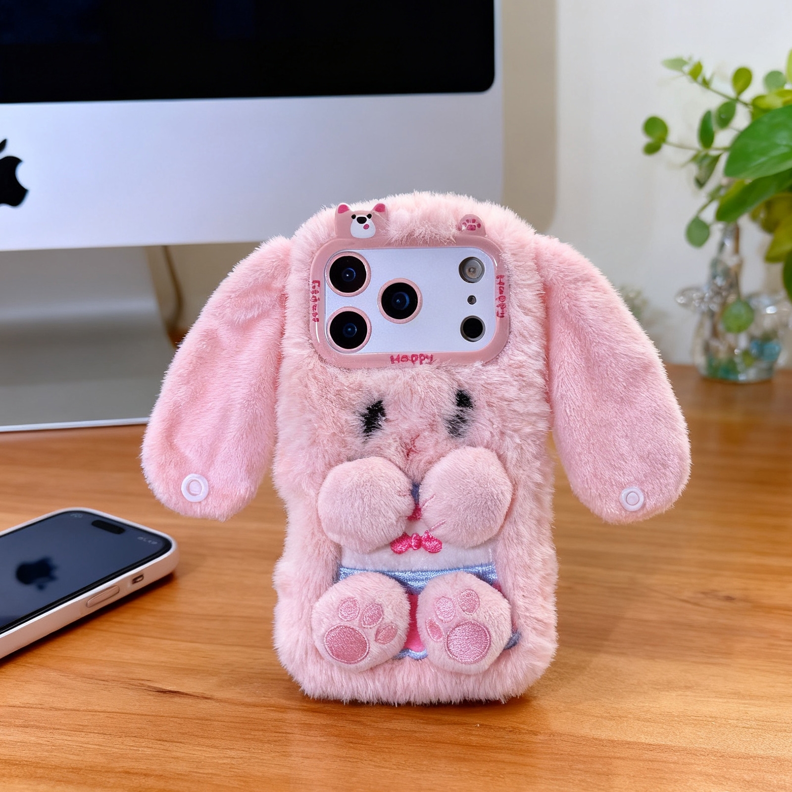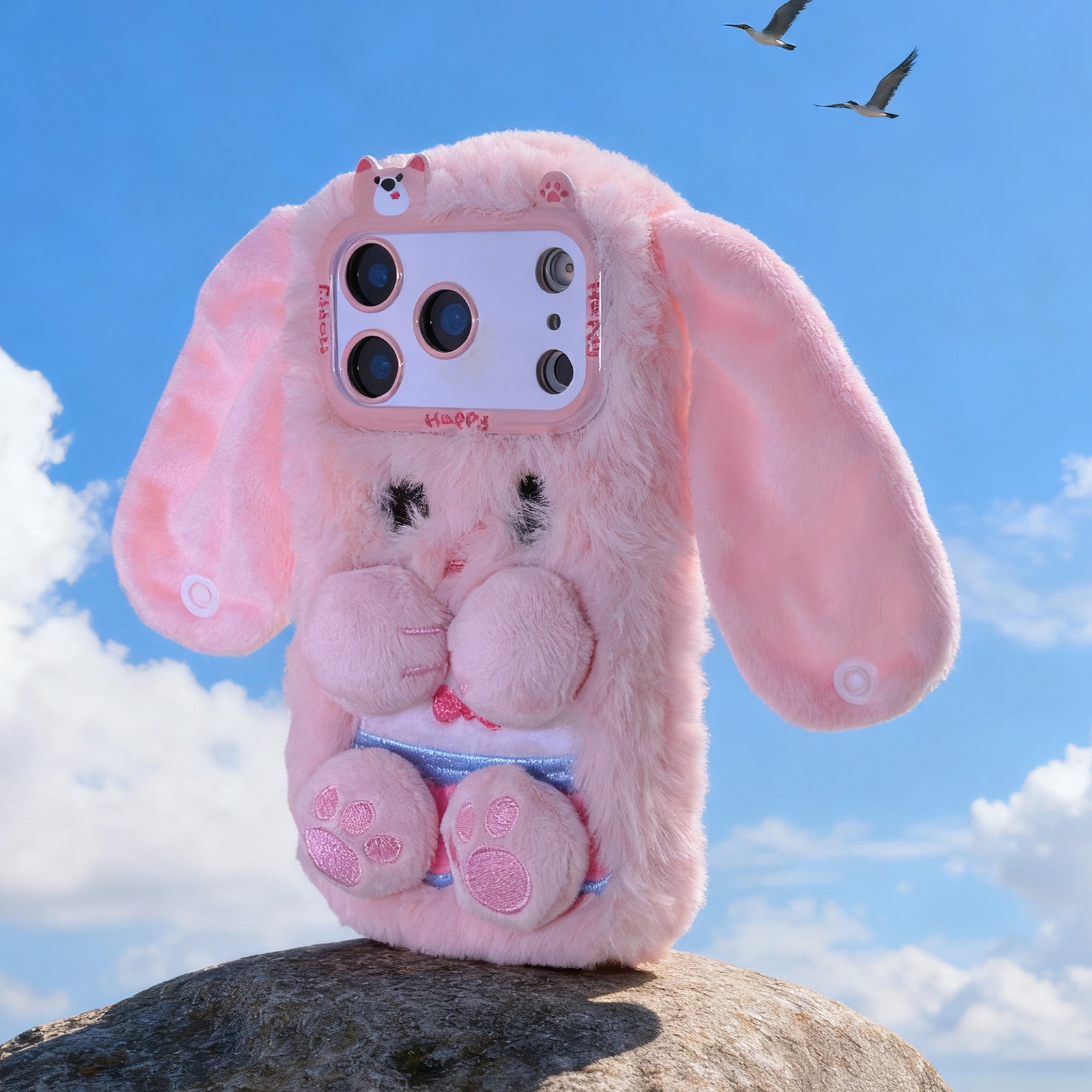 iPhone 17 Pro Max Rabbit Case – Long-Eared Plush Bunny Cover Pink