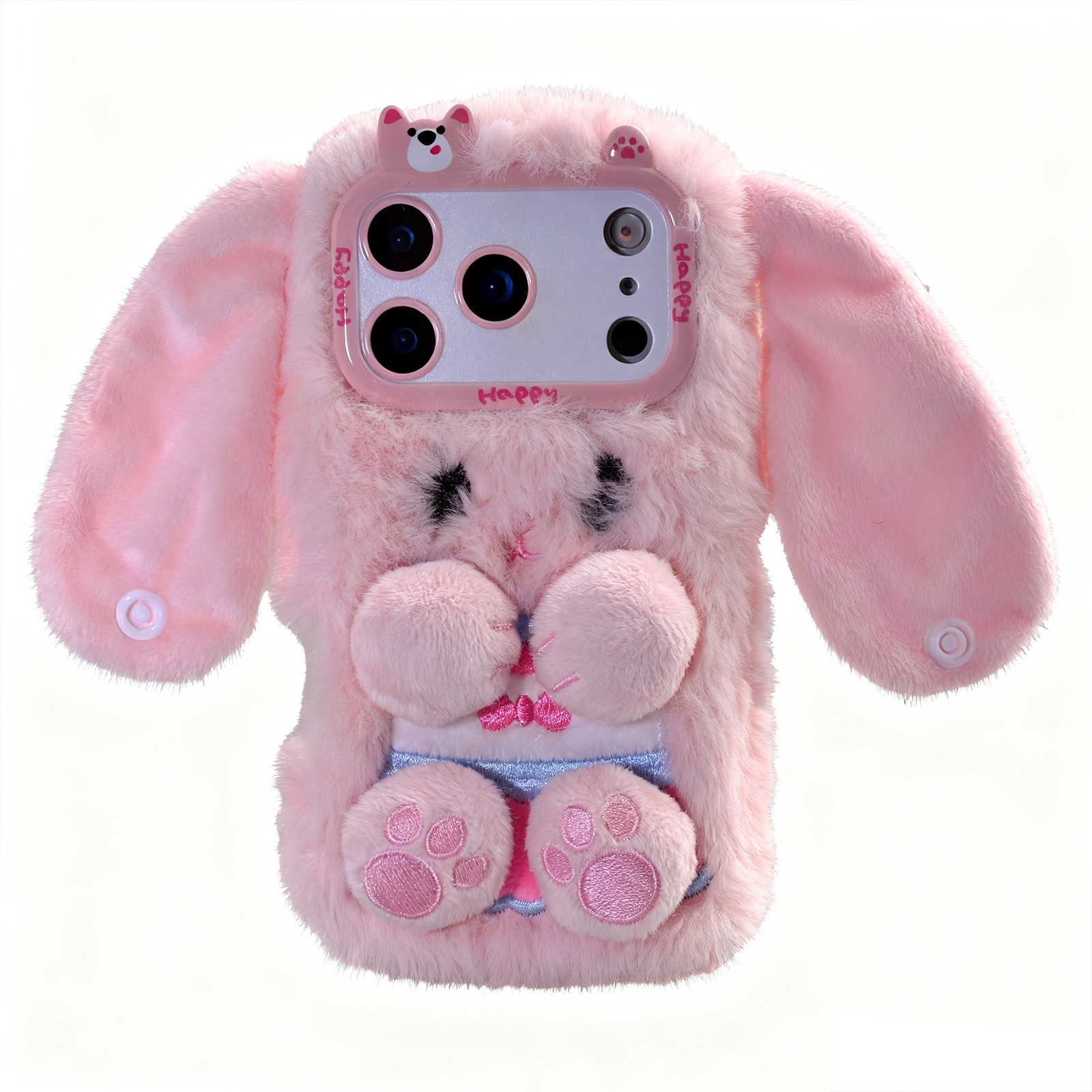 iPhone 17 Pro Rabbit Case – Long-Eared Plush Bunny Cover Pink