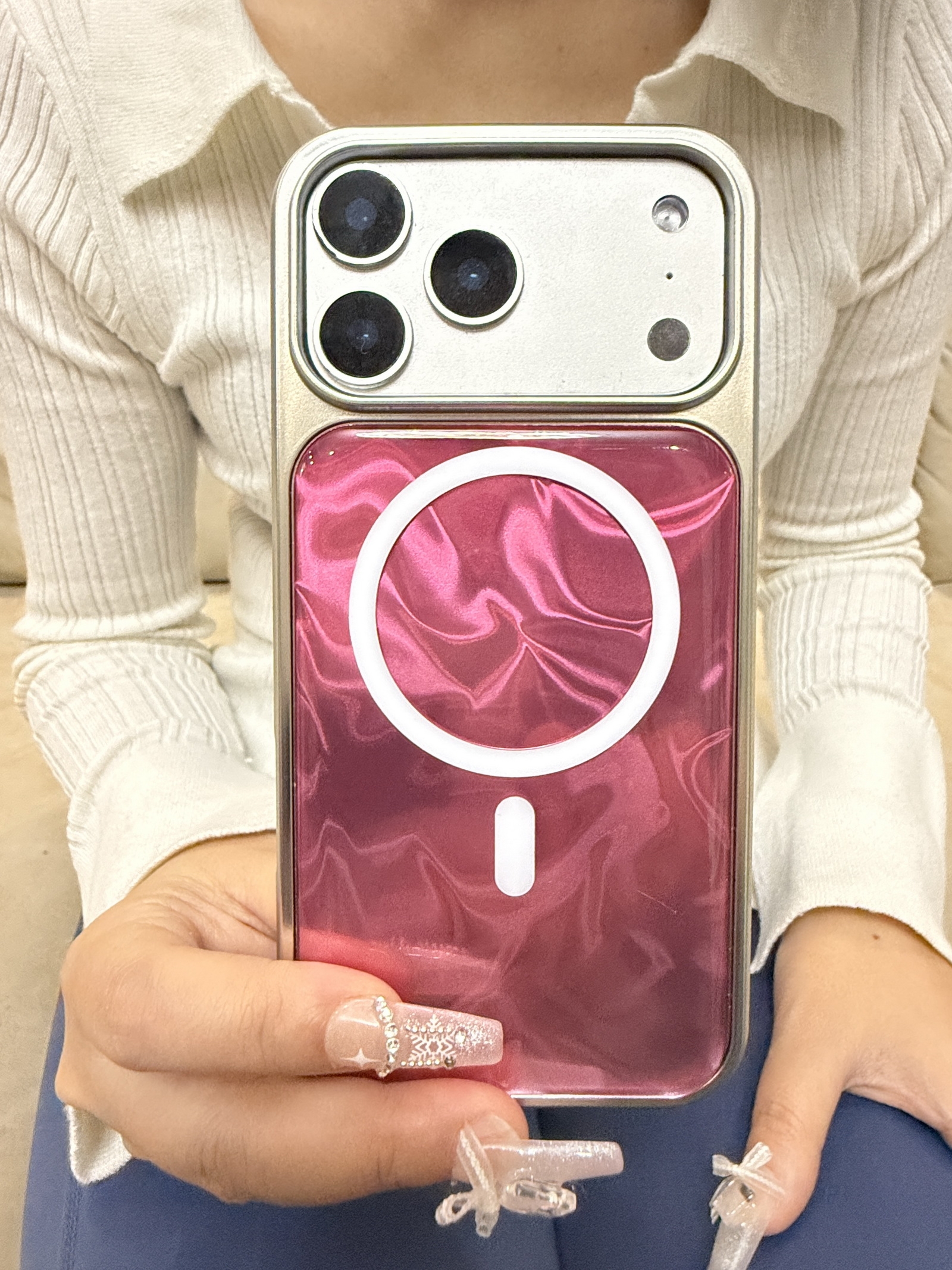 Iridescent Wave Phone Case for iPhone 17 Pro Max - Purple Blue Gradient with MagSafe Compatible Design, Pink
