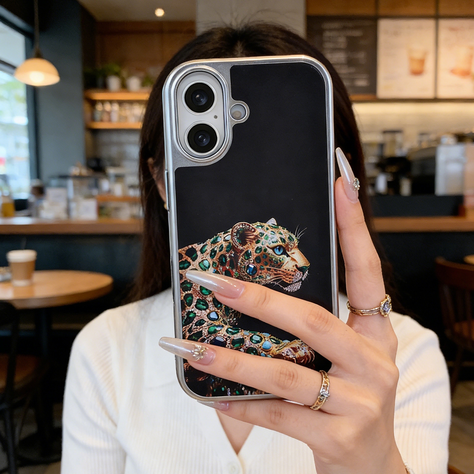 Jeweled Leopard Art Case for iPhone 17 - Opulent Green Gem Design, Yellow