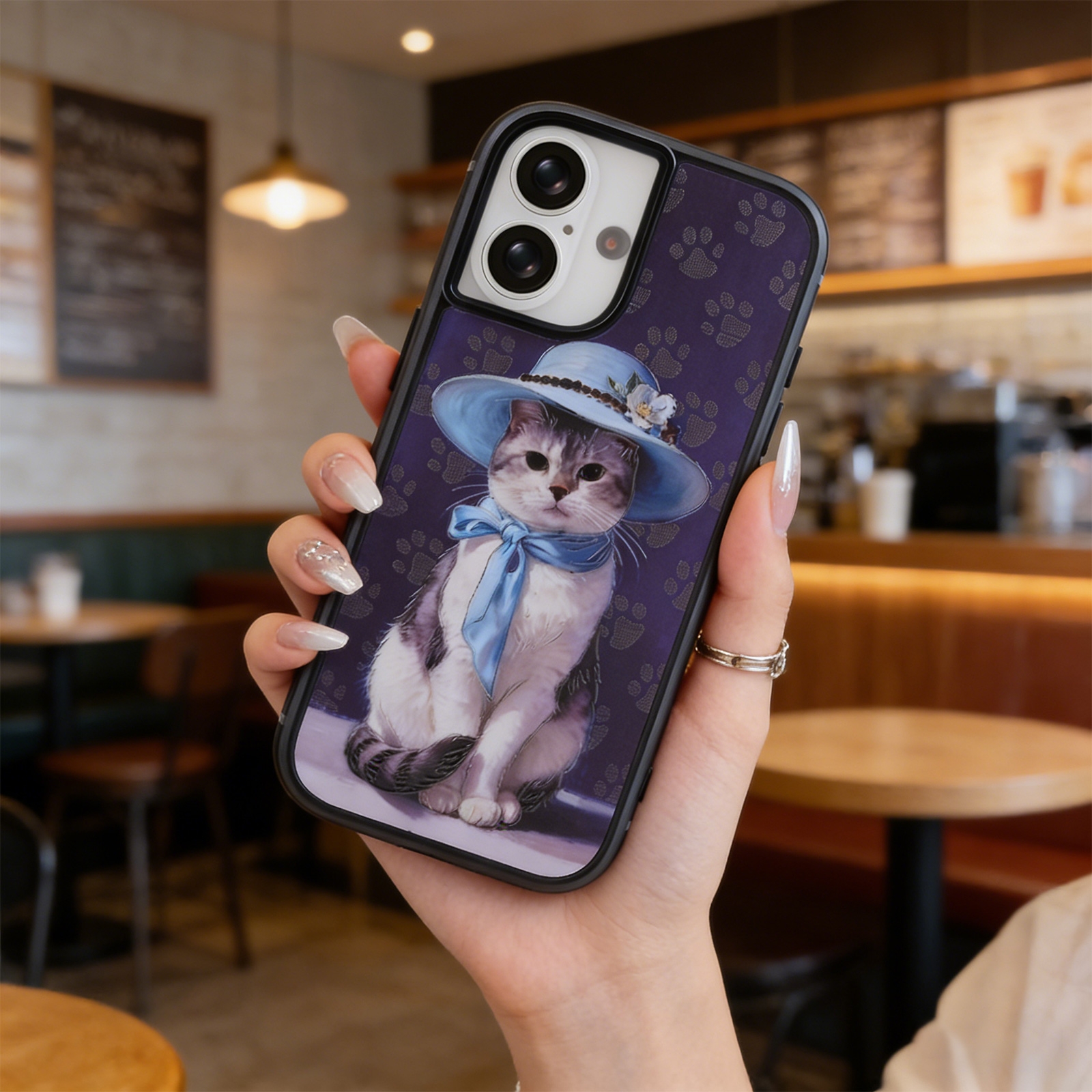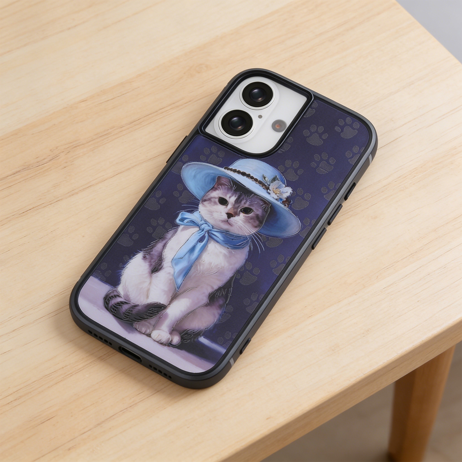 Lady Cat with Blue Hat Phone Case for iPhone 17 - Classic Art Print Design, Blue