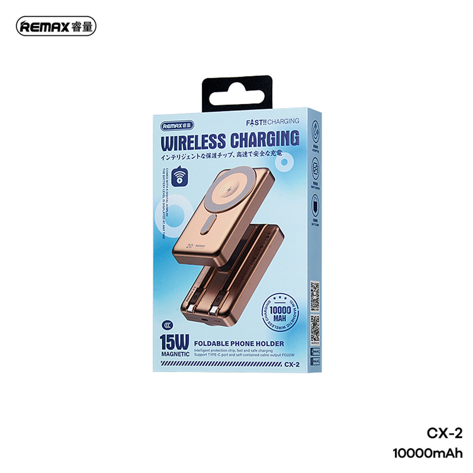 10000mAh PD 15W Magnetic Wireless Power Bank, Fast Charging Battery Pack with Zinc Alloy Holder Built-in USB C and 8 Pin Cable, Gold