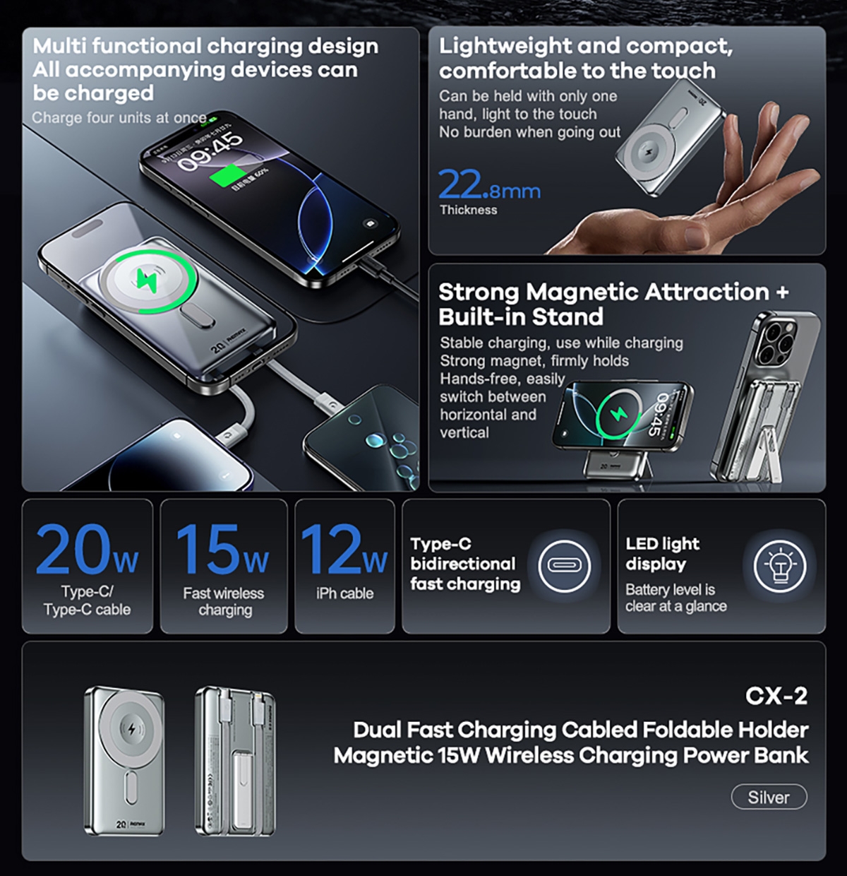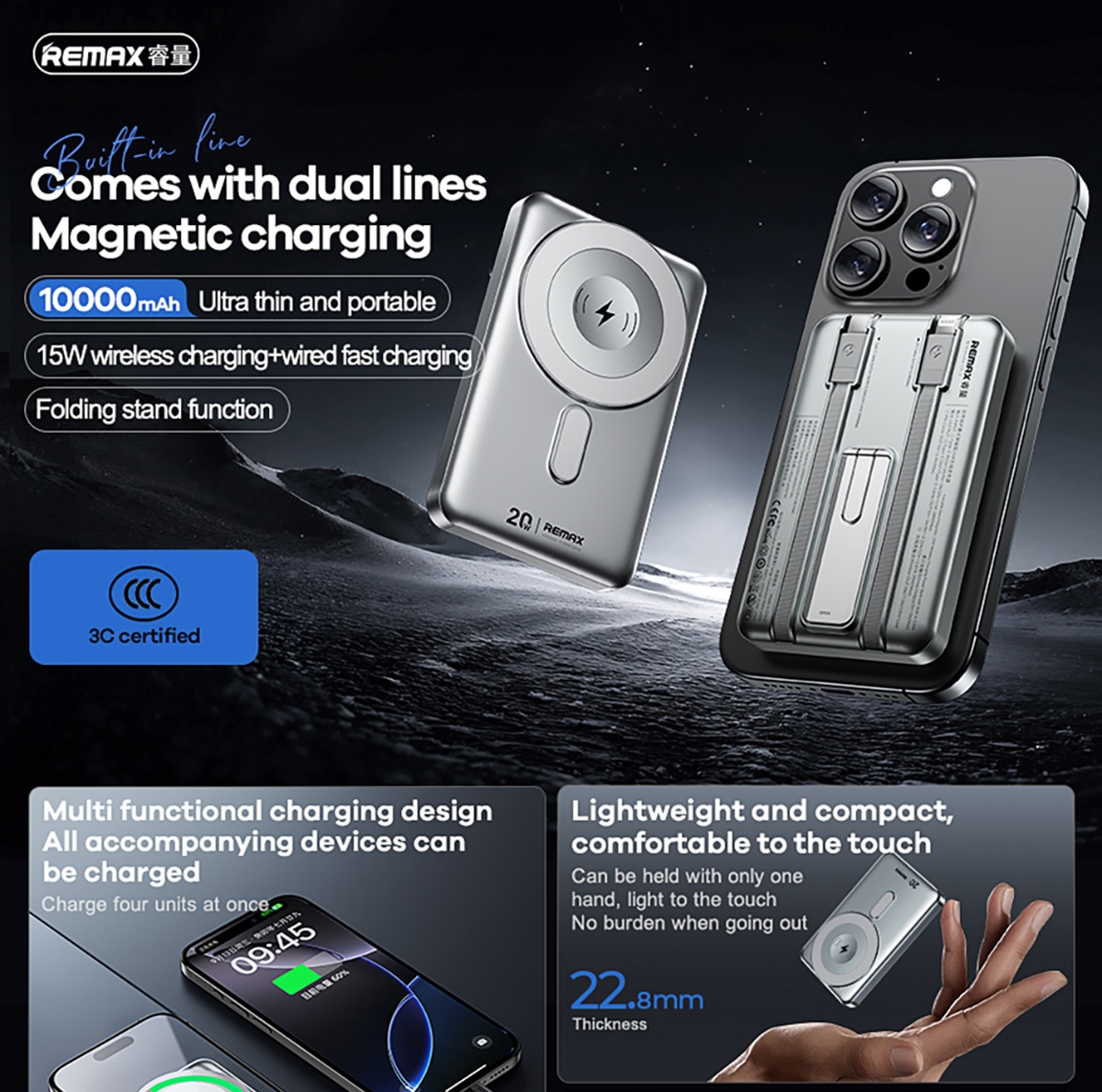 [Magnetic Wireless Charging] With an output power of 15W and a capacity of 10000mAh. Perfect for travelers, adventurers, and daily commuters, this magnetic wireless charger keeps your devices charged and ready to go, minimizing the mess of wires.