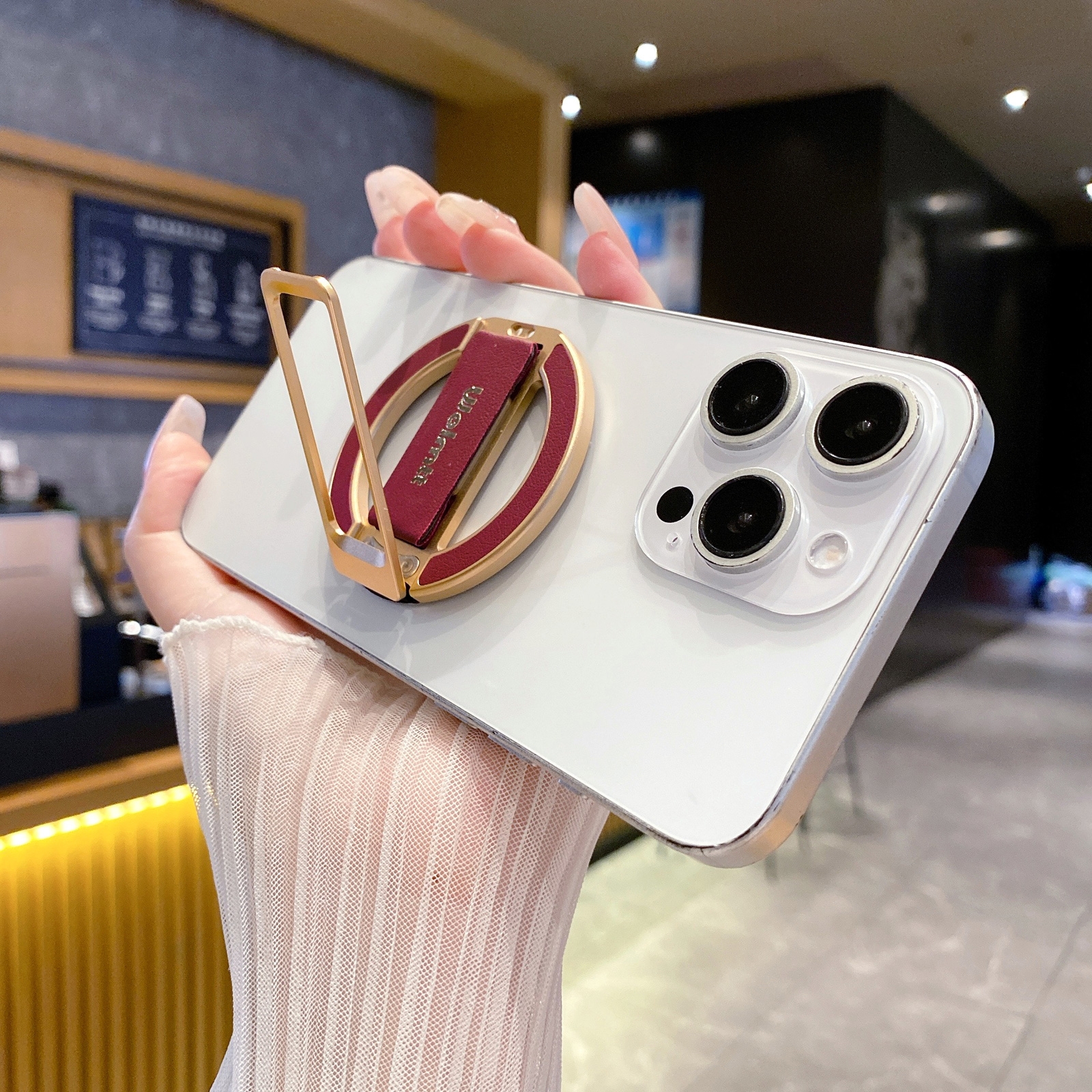 - Function: Provides phone grip stability and tabletop stand usage