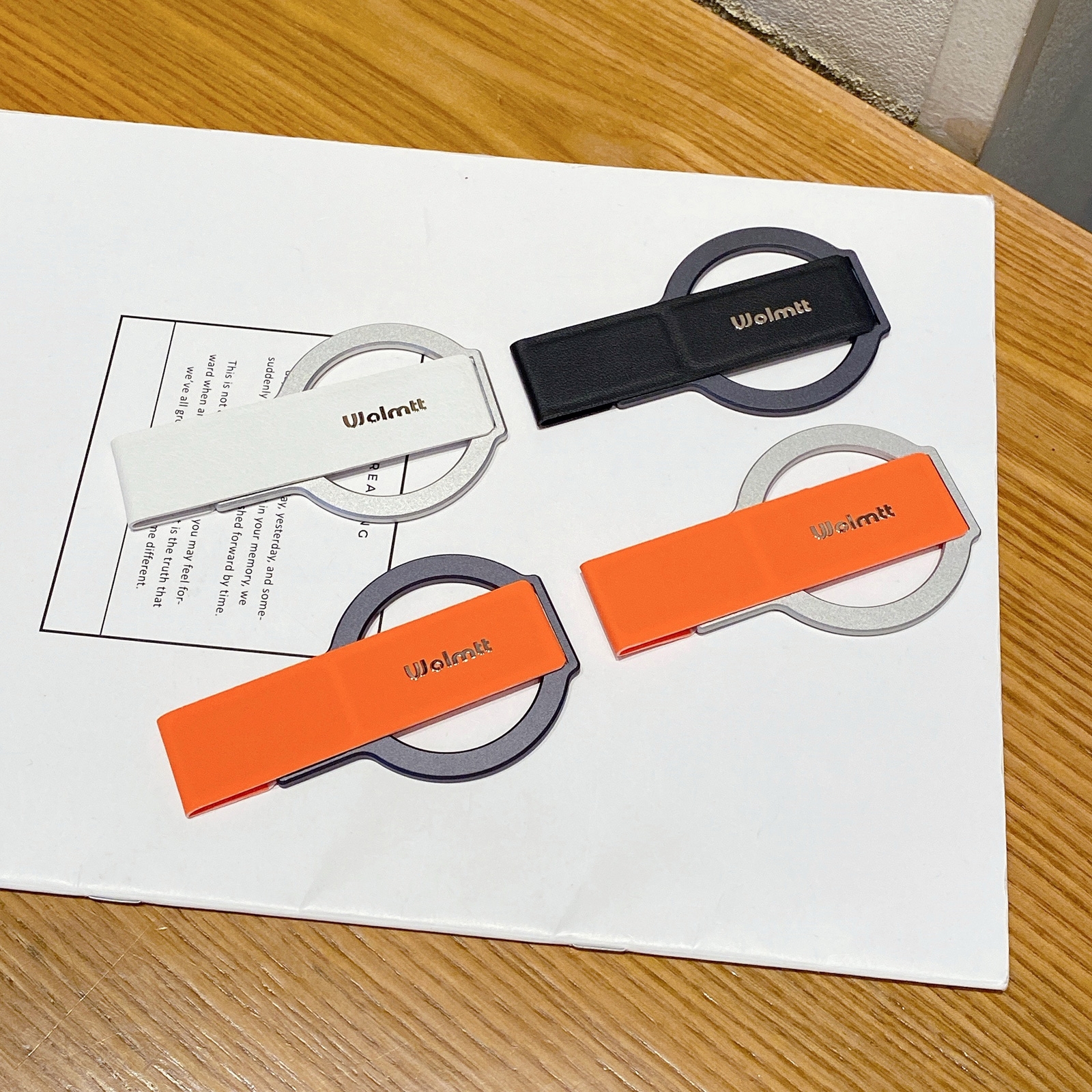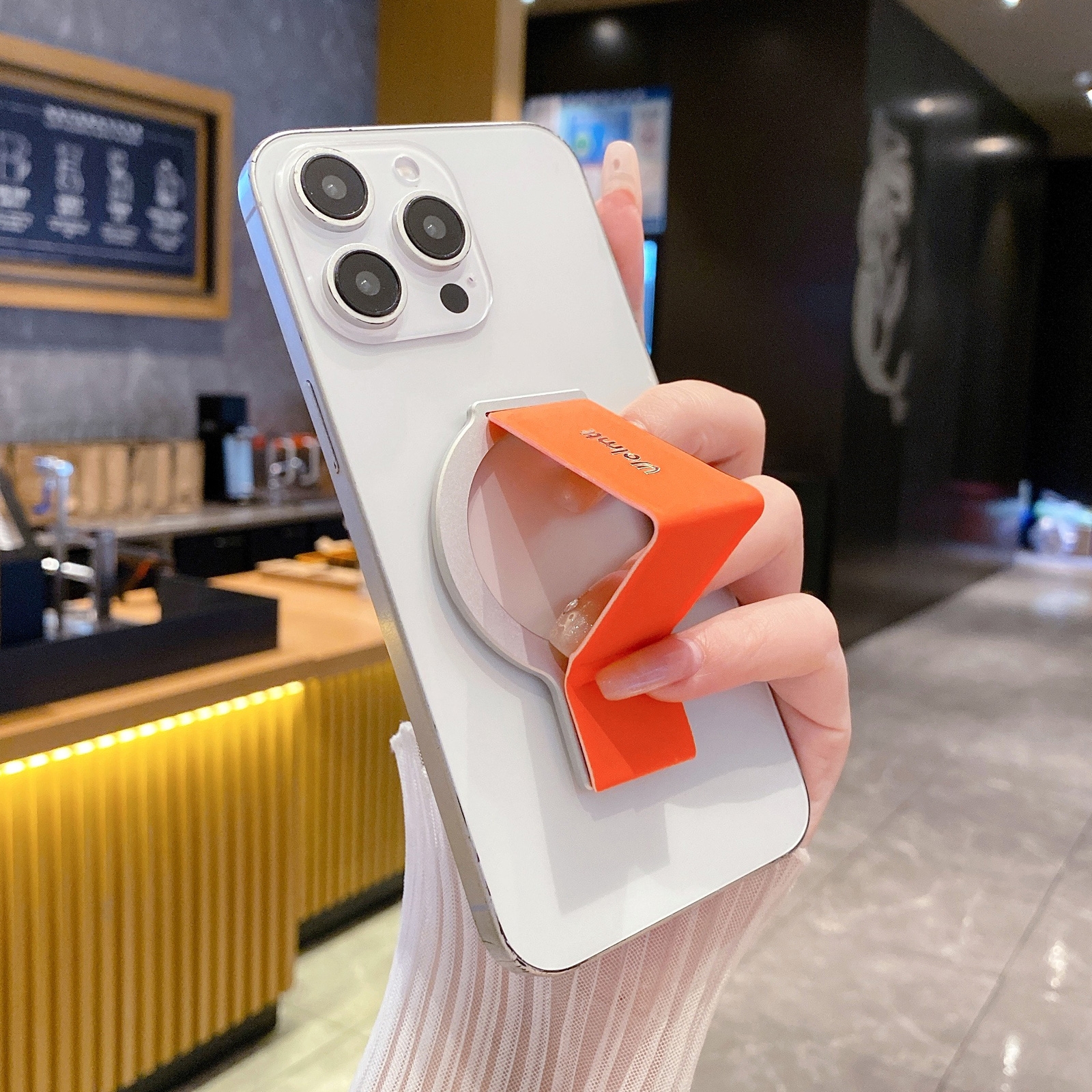 Magnetic Foldable Phone Stand with Finger Holder, Orange - Silver