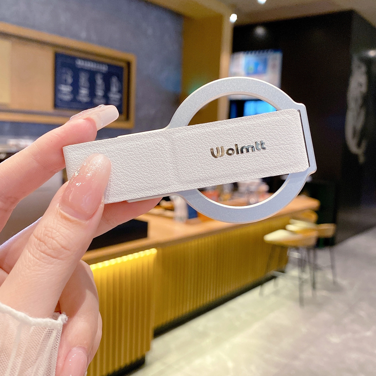 Magnetic Foldable Phone Stand with Finger Holder, White - Silver