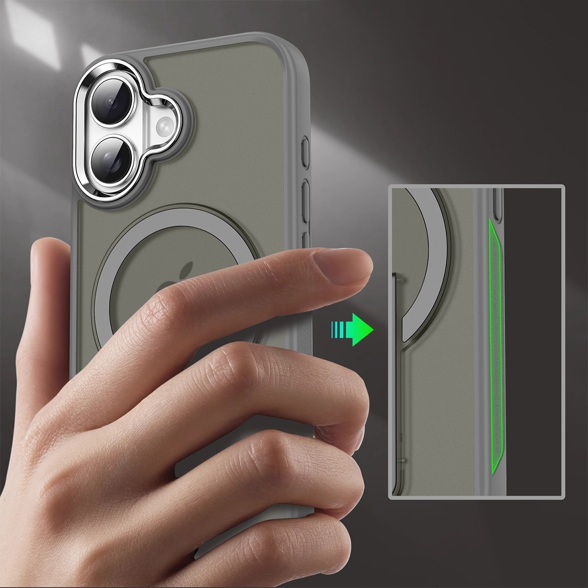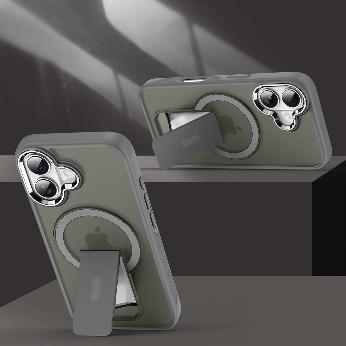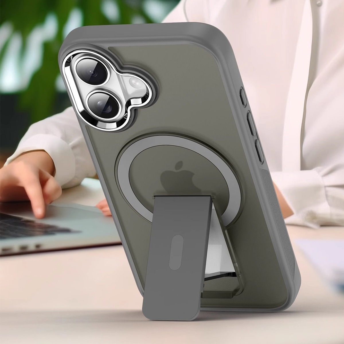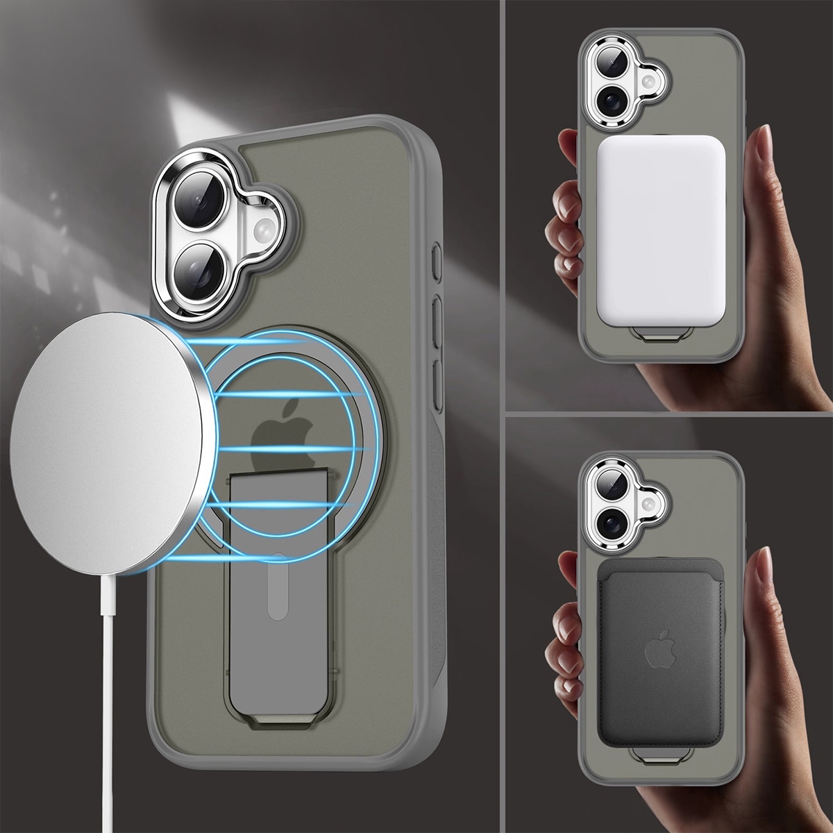Device Compatibility: Designed specifically for iPhone 17. Ensure model accuracy before purchase.MagSafe Support: Built-in magnetic ring supports all MagSafe accessories including chargers, wallets, car mounts, and power banks. Ensures stable wireless charging.Translucent Frosted Finish: Semi-transparent matte back resists fingerprints and yellowing while maintaining a clean aesthetic and comfortable grip.Magnetic Invisible Holder: Integrated aluminum stand supports angles from 40° to 120°, usable as a kickstand or finger ring for versatile use such as video watching or calls.Protective Materials: Constructed with flexible TPU edges and a hard PC back, offering shock absorption and daily scratch resistance without adding bulk.Precision Cutouts: All ports, buttons, and speakers remain fully accessible. Button covers provide tactile feedback and protection.