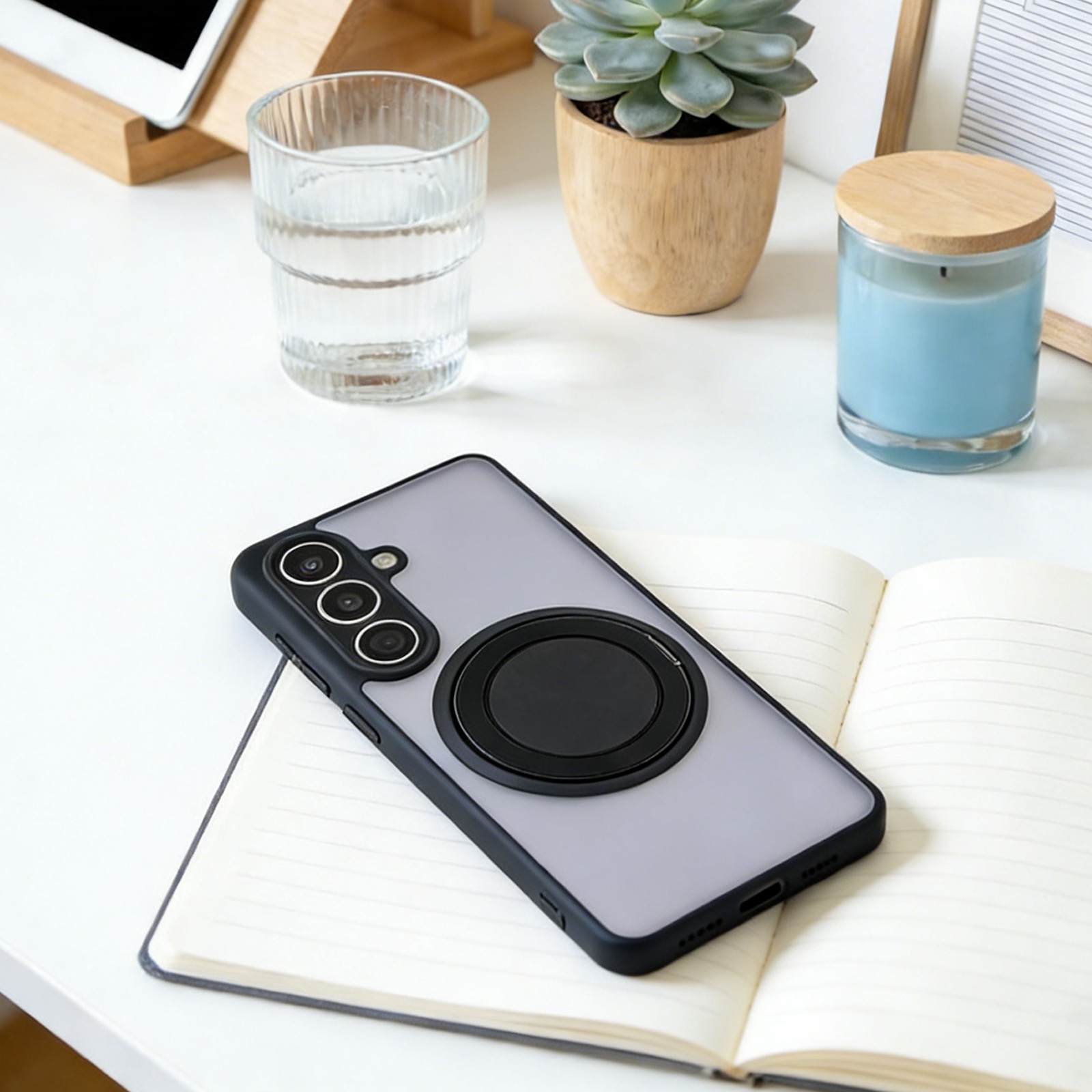 Magnetic Phone Case with 360° Rotating Stand for S26 Plus, Black