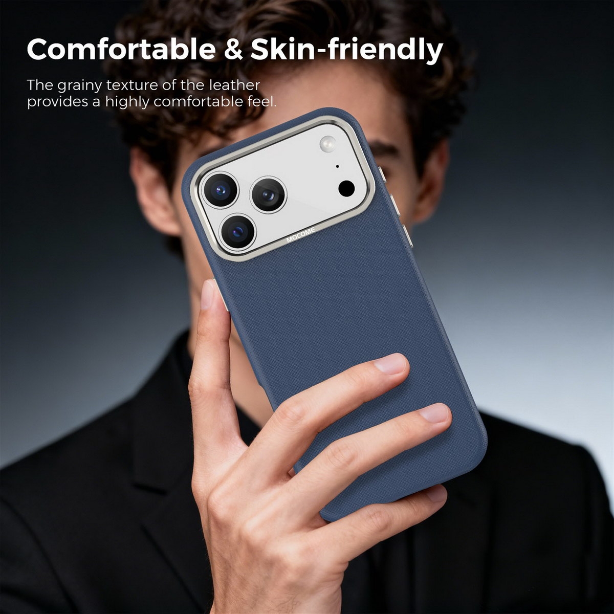 Matte Grid Texture Case for iPhone 17 - Metal Camera Frame & Magnetic Charging Support, Blue